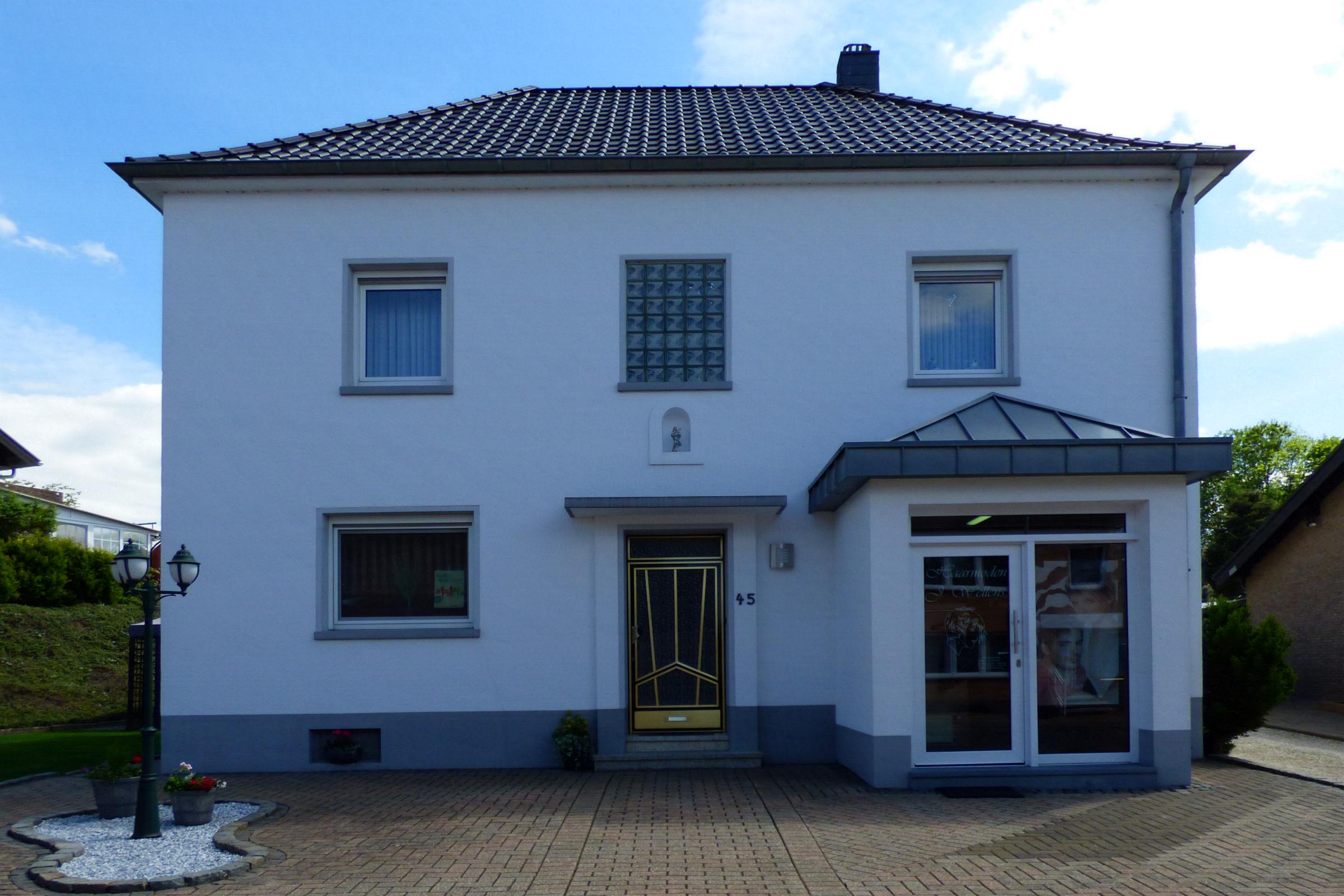 Standort: Die Madonna mit Kind hat ihren Standort an der Maarstraße 45, im Stadtteil Laffeld, in der Stadt Heinsberg. Beschreibung: Bei der Madonna mit Kind handelt es sich um eine ca.0,30 m hohe Figur in einer rundbogigen Mauernische. Die Figur steht mittig über dem Hauseingang