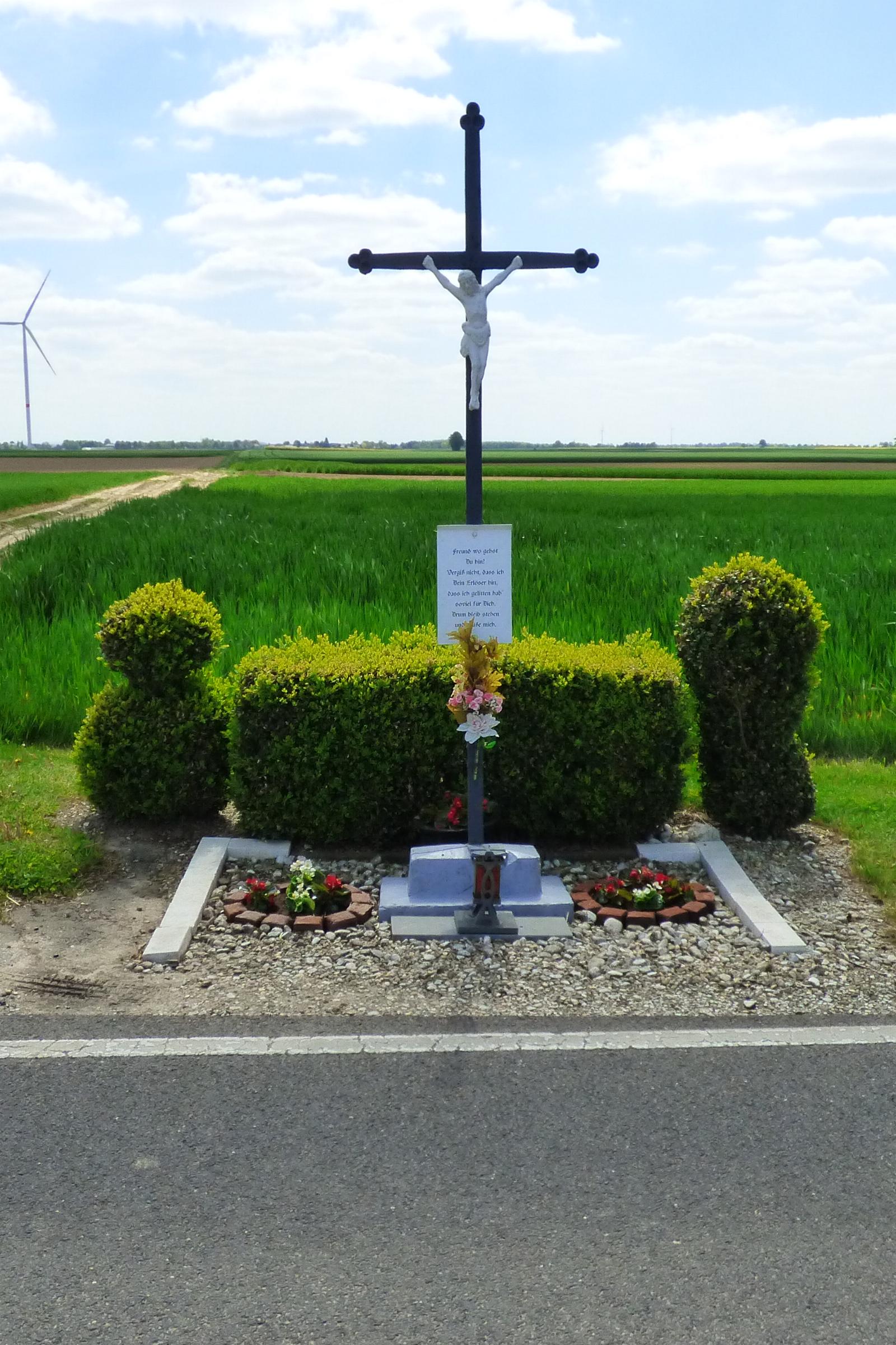 Standort: Das Wegekreuz hat seinen Standort an der Maarstraße in Richtung Selsten im Stadtteil Laffeld, in der Stadt Heinsberg. Das Kreuz steht in der Feldgemarkung Am Bischofsweg. Beschreibung: Bei dem Wegekreuz handelt es sich um ein ca. 3,50 m hohes Metallkreuz mit einem Metallkorpus. Eine Infotafel zeigt einen religiösen Spruch.