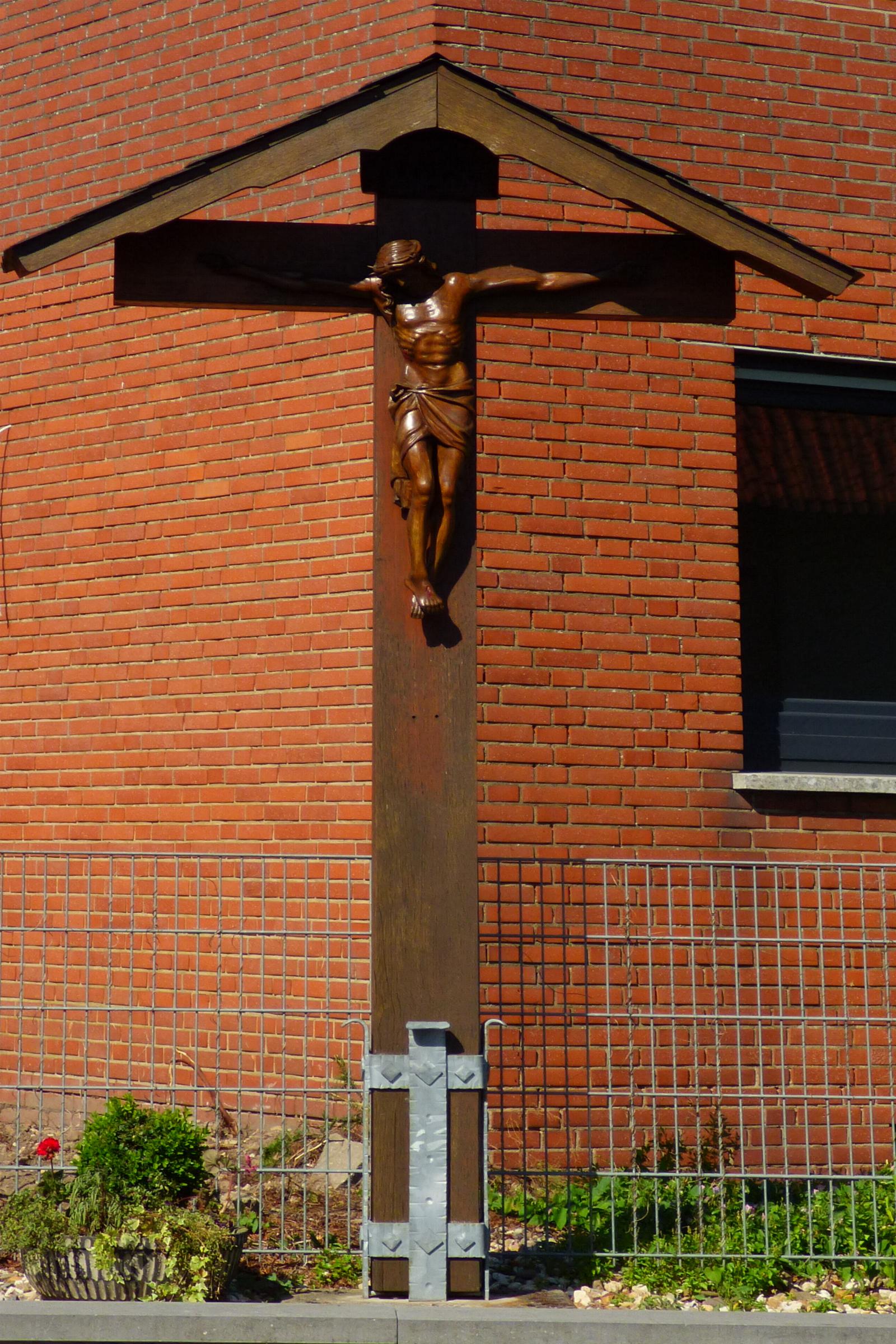 Standort: Das Wegekreuz befindet sich an der Niethausener Straße, im Stadtteil Oberbruch, in der Stadt Heinsberg. Beschreibung: Bei dem Wegekreuz handelt es sich um eine ca. 3,50 m hohes Holzkreuz mit einem Korpus unter einer Überdachung.
