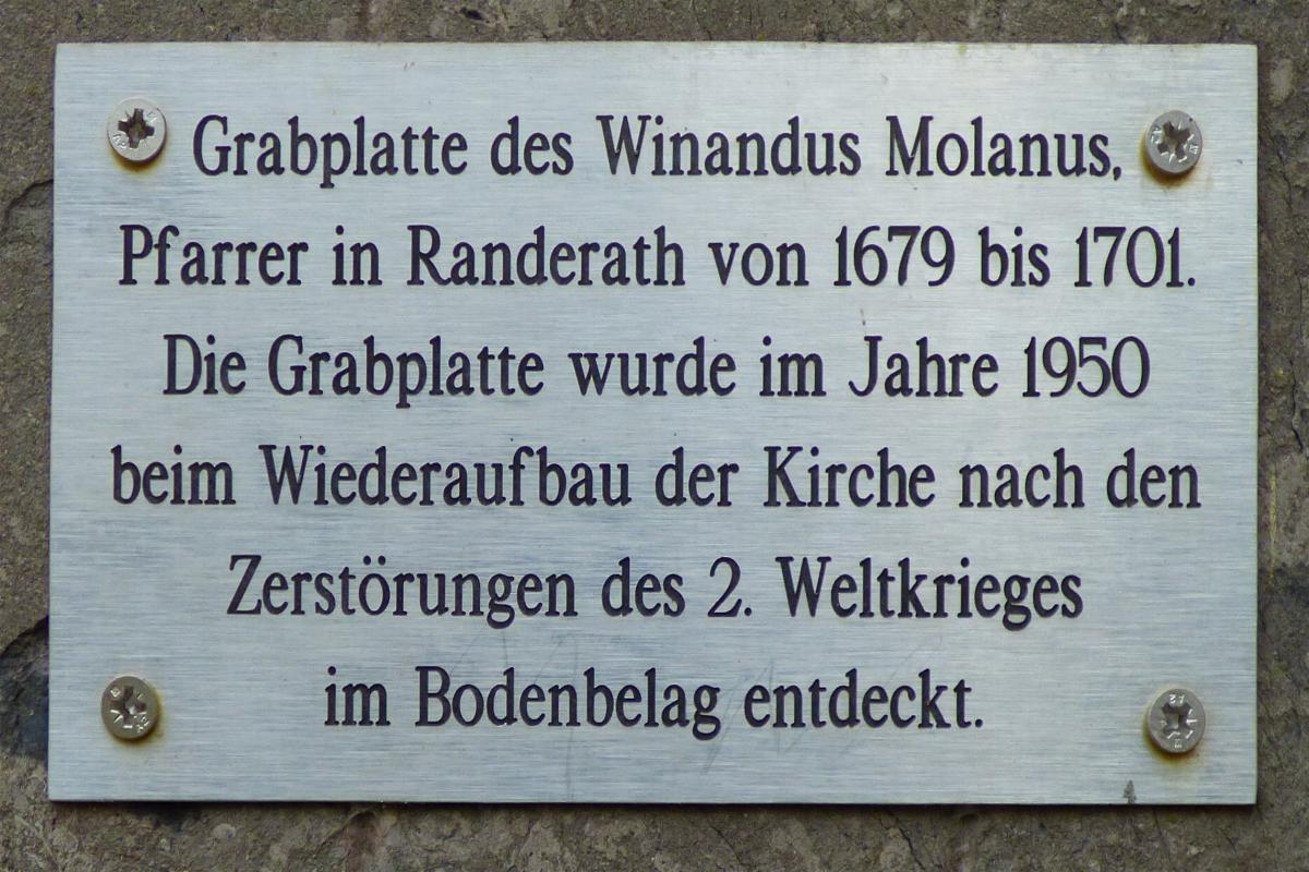 Standort: Die Grabplatte befindet sich an der Kath. Pfarrkirche St. Lambertus, an der Buschstraße, im Stadtteil Randerath, in der Stadt Heinsberg.