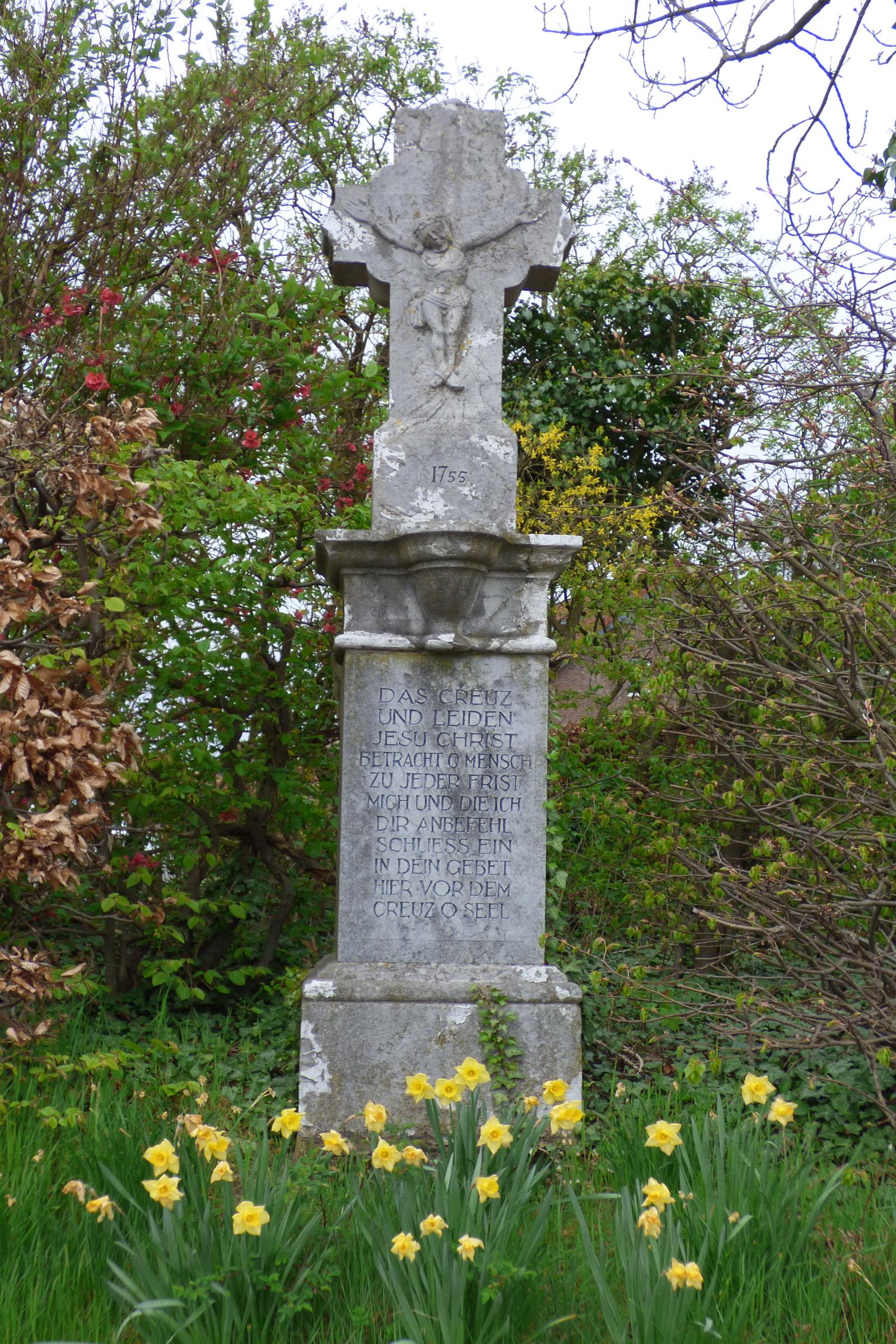Standort: Das Wegekreuz hat seinen Standort an der Straßenecke Uetterather Straße / Sandberg im Stadtteil Randerath, in der Stadt Heinsberg. Das Wegekreuz steht mit der Nr. 61 in der Denkmalliste der Stadt Heinsberg unter Denkmalschutz. Beschreibung: Bei dem Wegekreuz handelt es sich um ein ca. 3,00 m hohes Steinkreuz mit einem Korpus als Relief. Das Kreuz trägt die Jahreszahl 1755 und die Inschrift: DAS CREUZ UND LEIDEN JESU CHRIST BETRACHT O MENSCH ZU JEDER FRIST MICH UND DIE ICH DIR ANBEFEHL SCHLIESS EIN IN DEIN GEBET HIER VOR DEM CREUZ O SEEL Quellenhinweis * Dritte Ausgabe 1994: Handbuch des Bistums Aachen ISBN 3-87448-172-7 S. 731 * Denkmalliste Heinsberg, Nr. 61, Eintrag vom 30. Januar 1984