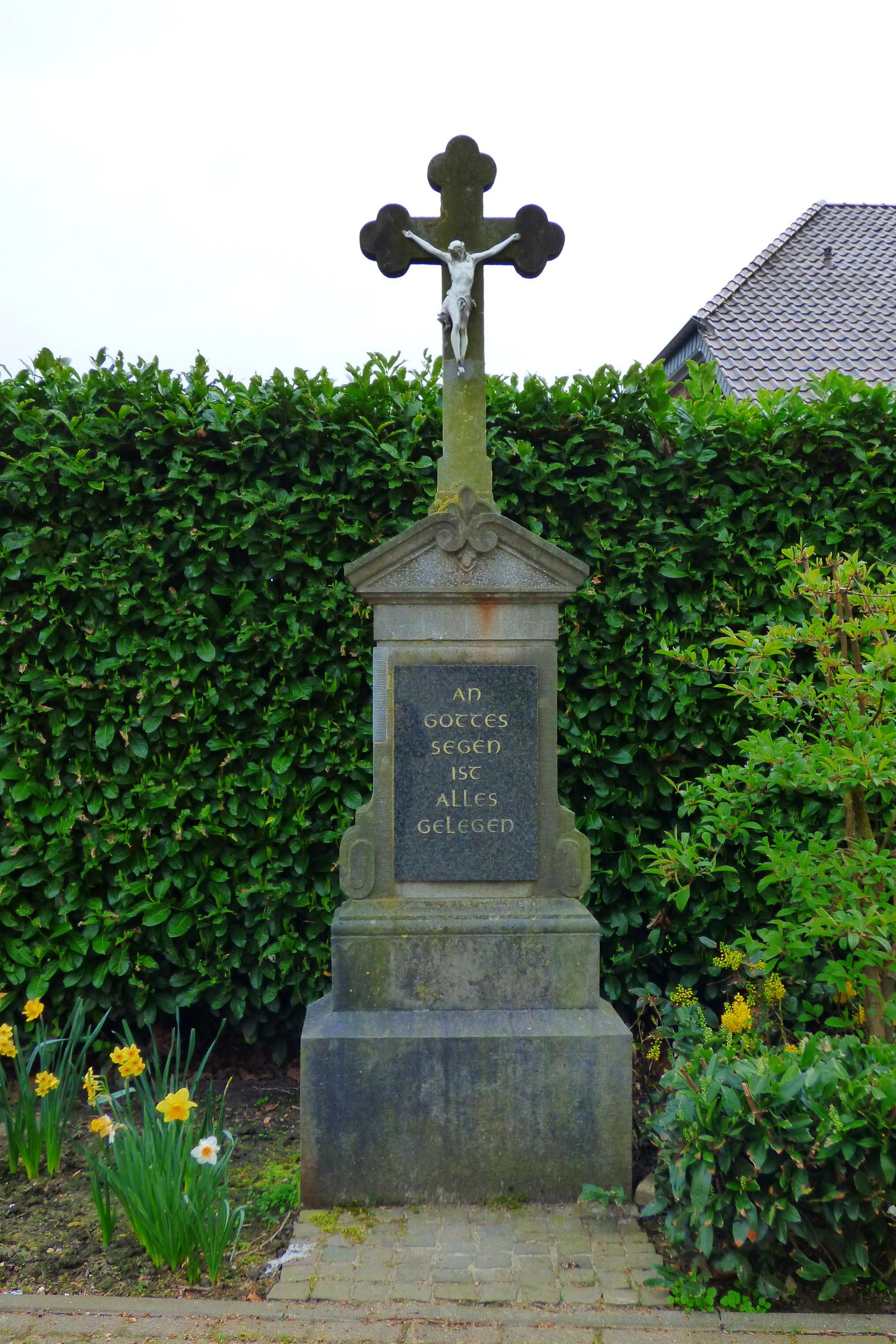 Standort: Das Wegekreuz hat seinen Standort Hinter der Mauer / Wurmaue 4 im Stadtteil Randerath, in der Stadt Heinsberg. Beschreibung: Bei dem Wegekreuz handelt es sich um ein ca. 2,50 m hohes, mehrfach gestuftes Steinkreuz mit einem Metallkorpus. Das Kreuz steht inmitten einer gepflegten Anlage. Im Mittelteil des Kreuzes ist die Inschrift zu lesen: A N G O T T E S S E G E N I S T A L L E S G E L E G E N Quellenhinweis * Dritte Ausgabe 1994: Handbuch des Bistums Aachen ISBN 3-87448-172-7 S. 731