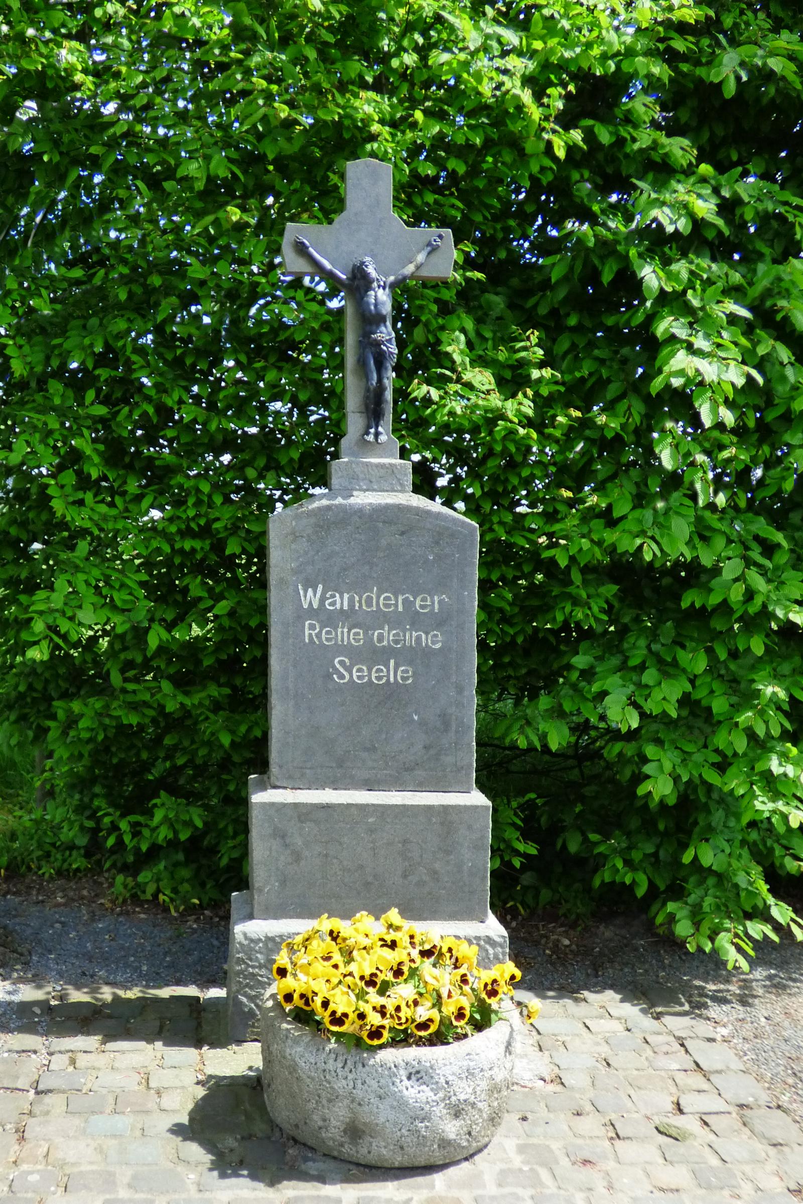 Wegekreuz in Scheifendahl Standort: Das Wegekreuz hat seinen Standort am Erpener Weg 1, in Scheifendahl, in der Stadt Heinsberg. Beschreibung: Bei dem Gedenkkreuz handelt es sich um ein ca. 2,30 m hohes mehrfach gestuftes Steinkreuz mit einem Metallkorpus. Das Kreuz trägt die Inschrift: Wanderer Rette deine Seele.