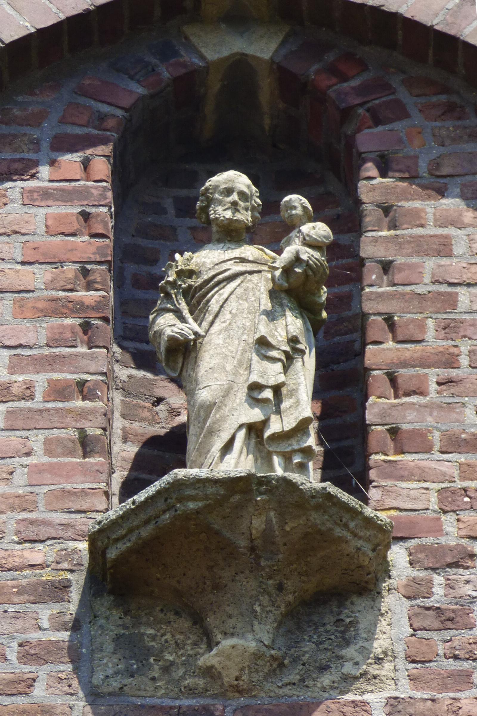 Standort: Die Figur des St. Antonius mit Kind befindet sich in der Giebelwand des Pfarrhauses an der Kirche in Uetterath, in der Stadt Heinsberg. Beschreibung: Bei der Figur des St. Antonius mit Kind handelt es sich um eine ca. 1,50 m hohe Steinfigur auf einer Konsole in einer Mauernische in der Giebelwand des Pfarrhauses.