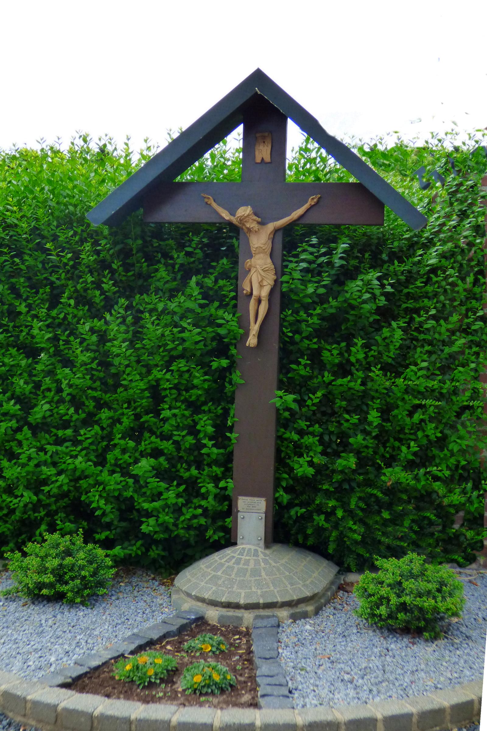 Standort: Das Wegekreuz hat seinen Standort in Stadtteil Kirchhoven - Vinn, in der Stadt Heinsberg. Beschreibung: Bei dem Wegekreuz handelt es sich um ein ca. 2,00 m hohes Holzkreuz mit einem Korpus unter einer Überdachung. Das Kreuz wurde im Mai 1990 an dieser Stell aufgestellt.