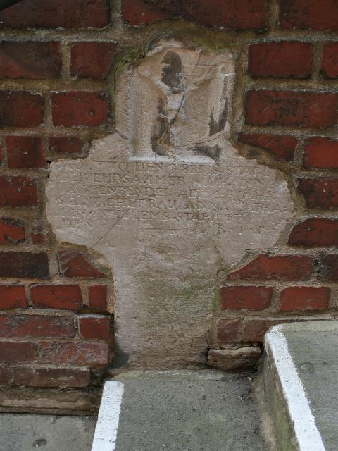 Bild 2 Bild 3 Bild 4 Diese drei Steine sind an der Seitengasse in der Wand zur Kirche eingemauert 2. Stein A O 1770 DEN 9. 8BRIS STARB DER EHRSAME JOHANNE KUPPENBENDER ALT 48 JAHR SEINE EHEFRAU ANNA CATHARINA WILLEMS STARB 17 DEM R.I.P.