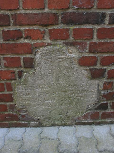 3. Stein Zeigt den gekreuzigten Jesus mit der Inschrift INRI TREINGEN TOMAS UND IHR SYSTER BERBGEN SINT IN GOT ENTSCHLAF 1634 8. OCTOBER