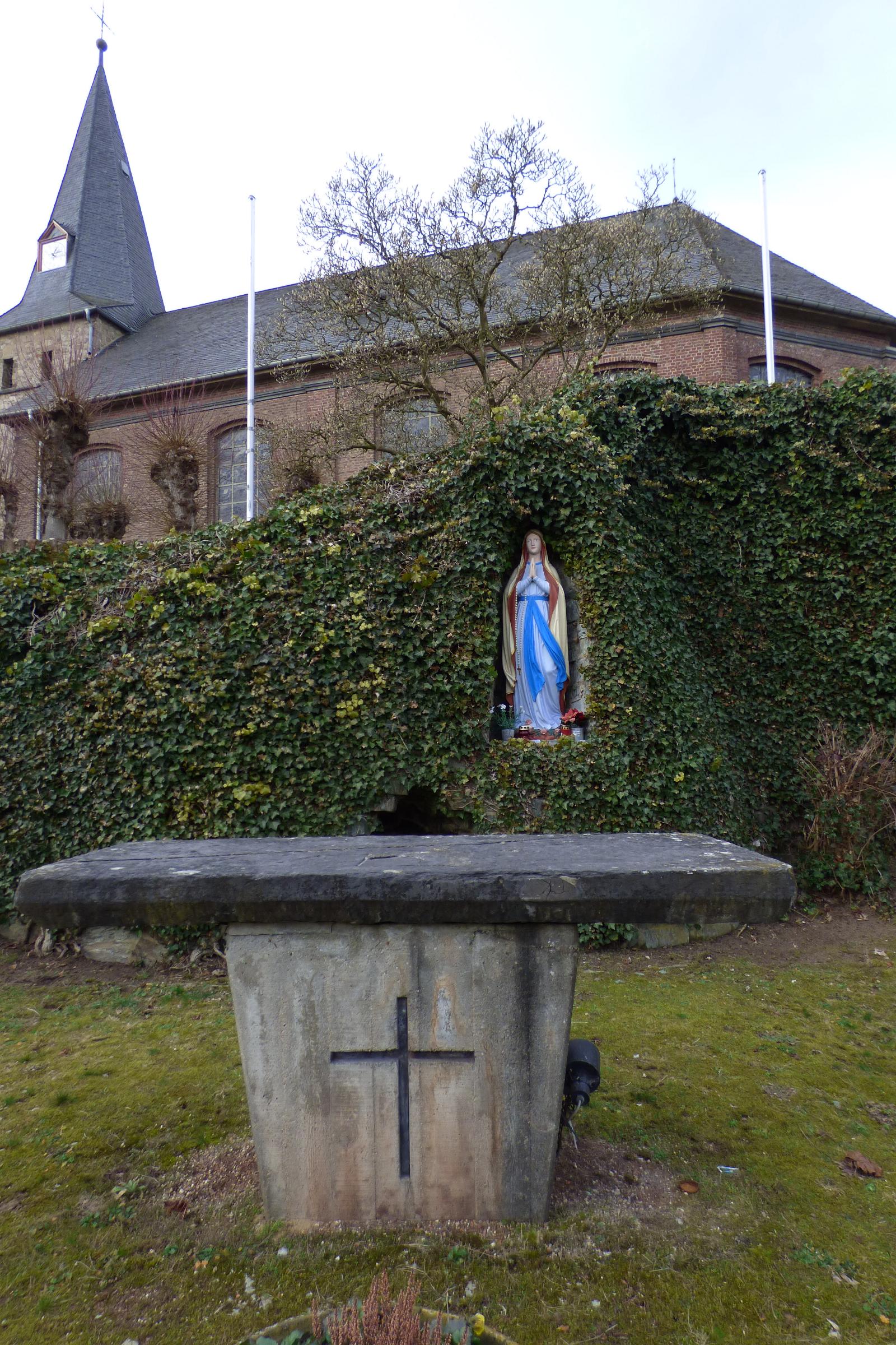 Standort: An der Südseite der Kirche in Doveren steht in einer Nische aus Naturstein eine lebensgroße Madonna. Sie steht unterhalb des Kirchplatzes.