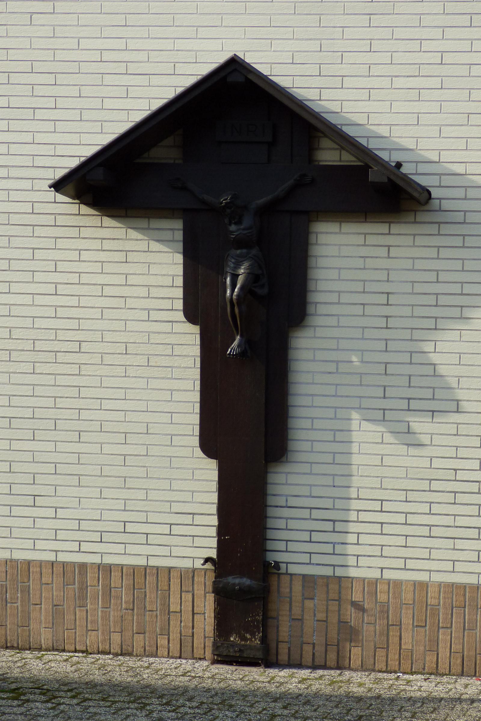 Standort: Das Wegekreuz hat seinen Standort am Doverener Markt 5, im Stadtteil Doveren, in der Stadt Hückelhoven. Denkmalbeschreibung: Bei dem Wegekreuz handelt es sich um ein 3,15 m hohes Holzkreuz mit einem Holzkorpus unter einem Satteldach. Das Kreuz stammt aus der Mitte des 20. Jahrhunderts. Quellenhinweis * Dritte Ausgabe 1994: Handbuch des Bistums Aachen ISBN 3-87448-172-7 S. 768