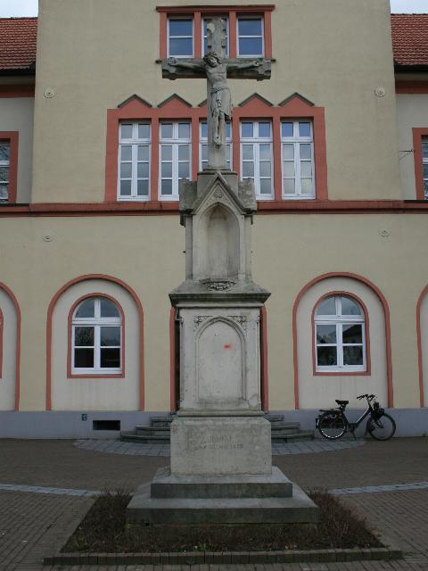 Standort: Das Hochkreuz hat seinen Standort am Markt, im Stadtteil Ratheim, in der Stadt Hückelhoven. Das Kreuz steht mit der Nr. 34 in der Denkmalliste der Stadt Hückelhoven unter Denkmalschutz. Denkmalbeschreibung: Es handelt sich um ein Hochkreuz mit einer Höhe von 4,50 m unter einem mehrfach gestuften Sockel. Das neugotische Kreuz aus dem Jahr 1878 ist aus Werkstein und besitzt im Oberteil eine Figurennische. Quellenhinweis * Denkmalliste Hückelhoven, Nr. 34, Eintrag: 21. Januar 1983 * Dritte Ausgabe 1994: Handbuch des Bistums Aachen ISBN 3-87448-172-7 S. 777