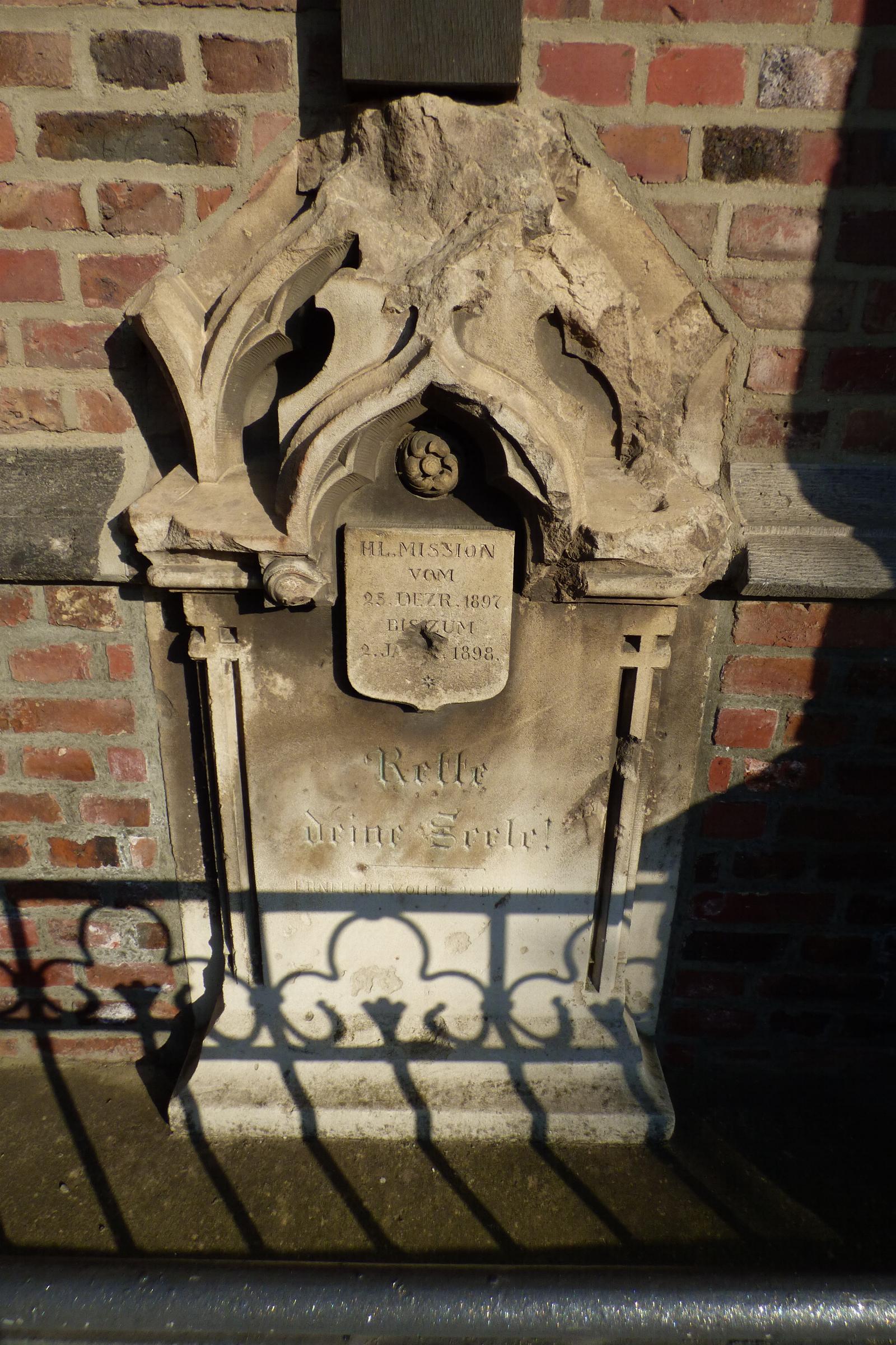 Standort: Das Missionskreuz befindet sich in einer Nische der Giebelwand der Kirche in Rurich, in der Stadt Hückelhoven. Die Kirche und damit auch das Kreuz stehen mit der Nr. 18 in der Denkmalliste der Stadt Hückelhoven unter Denkmalschutz. Beschreibung: Das Missionskreuz erinnert an die Hl. Mission in der Pfarre Rurich. Es handelt sich um ein ca. 2,50 hohes Holzkreuz mit einem Korpus. Ein Dachüberbau schützt das Kreuz vor Witterungseinflüssen. Auf einem Ornamentstein stehen die Daten der Mission. Inschrift: HL. MISSION vom 25. Dezember 1897 bis zum 2. Januar 1898 Rette deine Seele erneuert vom 19. bis 26. Dezember 1909 Quellenhinweis * Denkmalliste Hückelhoven, Nr. 18, Eintrag: 12. Januar 1983