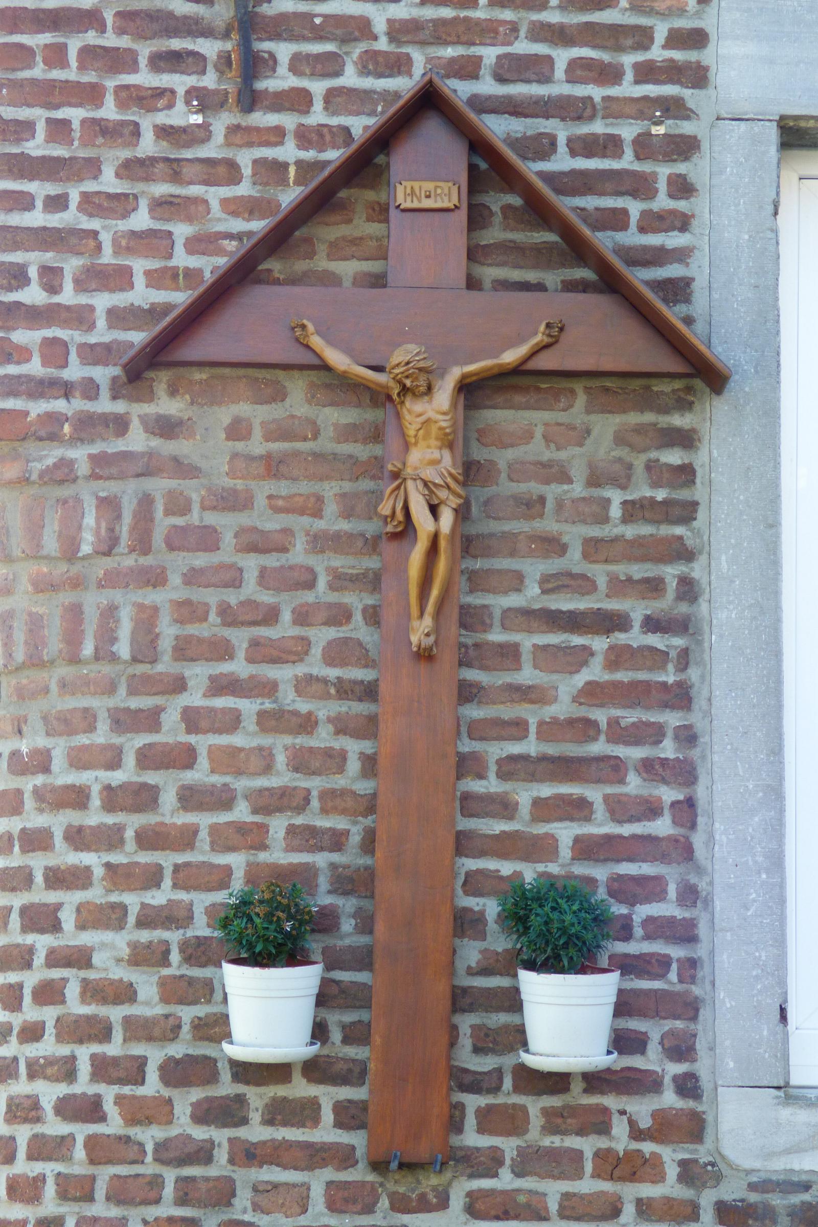 Standort: Das Hauskreuz hat seinen Standort am Kirchplatz 1 im Ortsteil Millen, in der Gemeinde Selfkant. Geschichte: Bei dem Hauskreuz handelt es sich um ein ca. 2,50 m hohes Holzkreuz mit einem Korpus unter einer Überdachung.