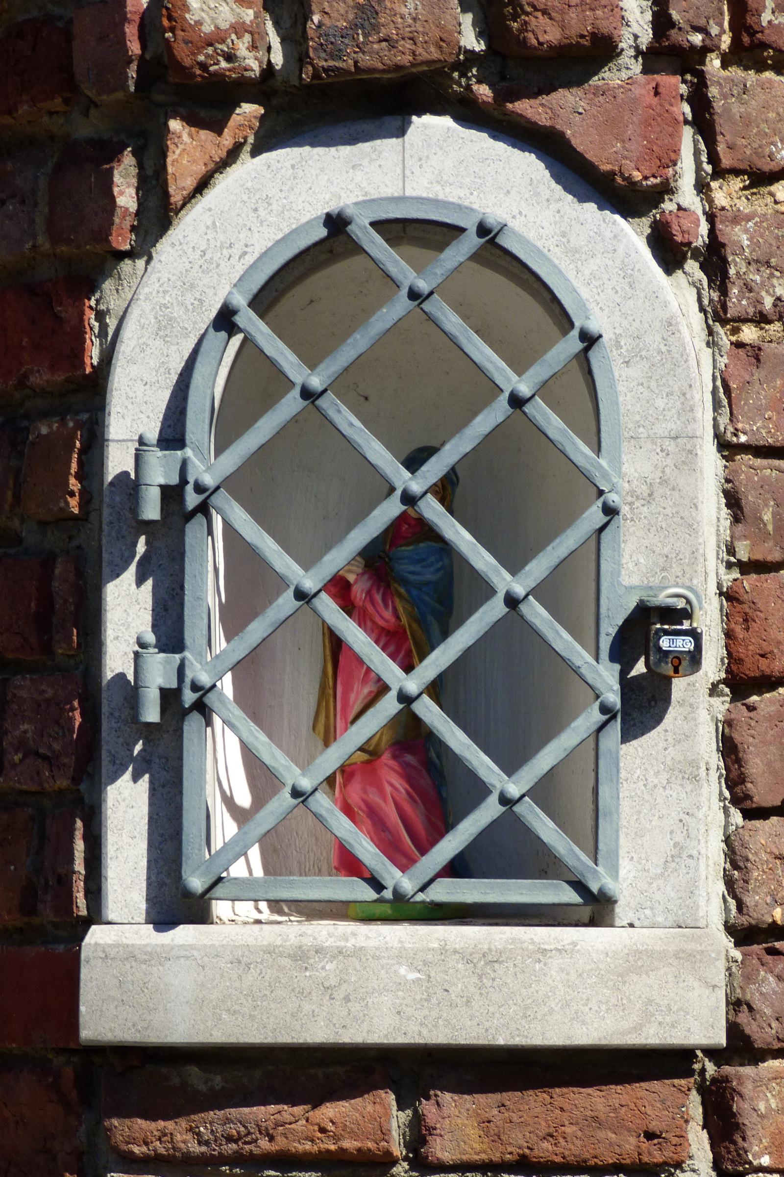 Standort: Der Figurenerker hat seinen Standort an der Schleidstraße 1, im Ortsteil Effeld, in der Stadt Wassenberg. Beschreibung: Der rundbogige Erker ist auf Augenhöhe an der Hausecke angebracht und ist gut sichtbar. Hinter einem Gittertürchen steht eine Heiligenfigur.