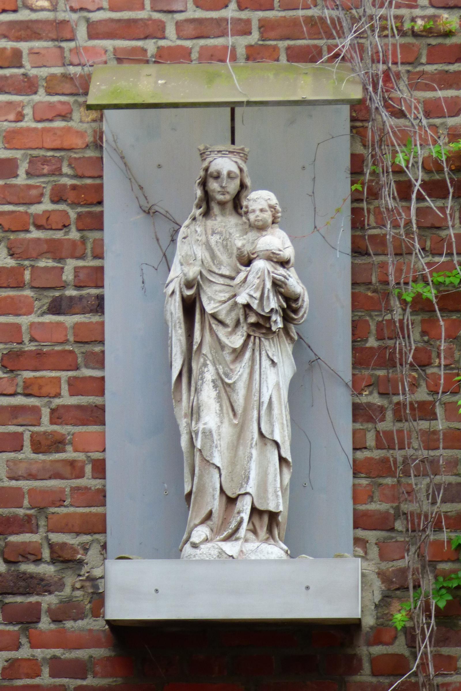 Standort: Die Madonna mit Kind, befindet sich an der Wand des Jugendheimes in Vorhof der Propsteikirche St. Georg, in der Stadt Wassenberg. Beschreibung: Die Madonna mit Kind hat ihren Standort auf einem Wandsockel. Die freistehende Figur mit einer Größe von 1,40 m besteht aus Werkstoff. Die Figur stand bis zur Zerstörung des Jugendheims im letzten Krieg in einer Frontnische des Gebäudes über dem Eingang. Im Zuge der Restaurierung und der Neugestaltung des TOT (Jugendheim) wurde die Madonna an dem derzeitigen Standort aufgestellt. Die Einweihung war am 29. September 1974. Quellenhinweis: * Dritte Ausgabe 1994: Handbuch des Bistums Aachen ISBN 3-87448-172-7 S. 803 * Verzeichnis: Christliche Kleindenkmale im Kreis Heinsberg (Wassenberg Nr. 11)