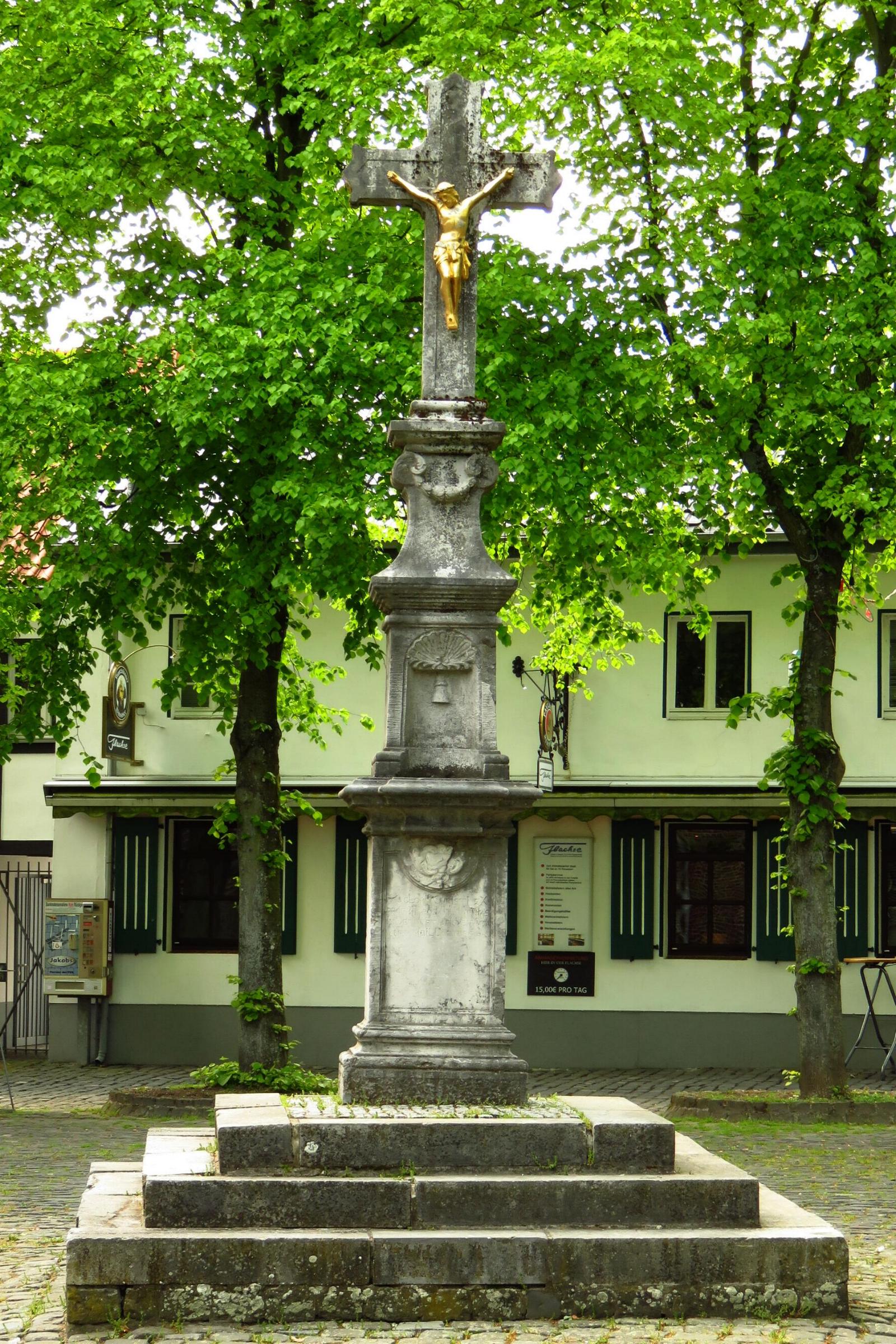 Standort: Das ehemalige Friedhofskreuz steht auf dem Kirchplatz, im Stadtteil Beeck in der Stadt Wegberg. Es steht mit der Nr. 10 in der Denkmalliste der Stadt Wegberg unter Denkmalschutz. Beschreibung: Das Steinkreuz mit einem dreifach gegliederten Sockel hat eine Höhe von 4,50 m ist 0,82 m breit und 0,81 m tief. Der Metallkorpus ist vergoldet. Legende: Die Familie des Mathias Inderfurt ließ im Jahre 1791, wie aus dem Chronogramm zu ersehen ist, mit eigenen Mitteln auf dem damaligen Friedhof, der rund um die Beecker Kirche lag, dieses Kreuz errichten. Quellenhinweis: * Verzeichnis: Christliche Kleindenkmale im Kreis Heinsberg (Beeck 1) * Denkmal Nr. 10 in der Denkmalliste der Stadt Wegberg * Dritte Ausgabe 1994: Handbuch des Bistums Aachen ISBN 3-87448-172-7 S. 811