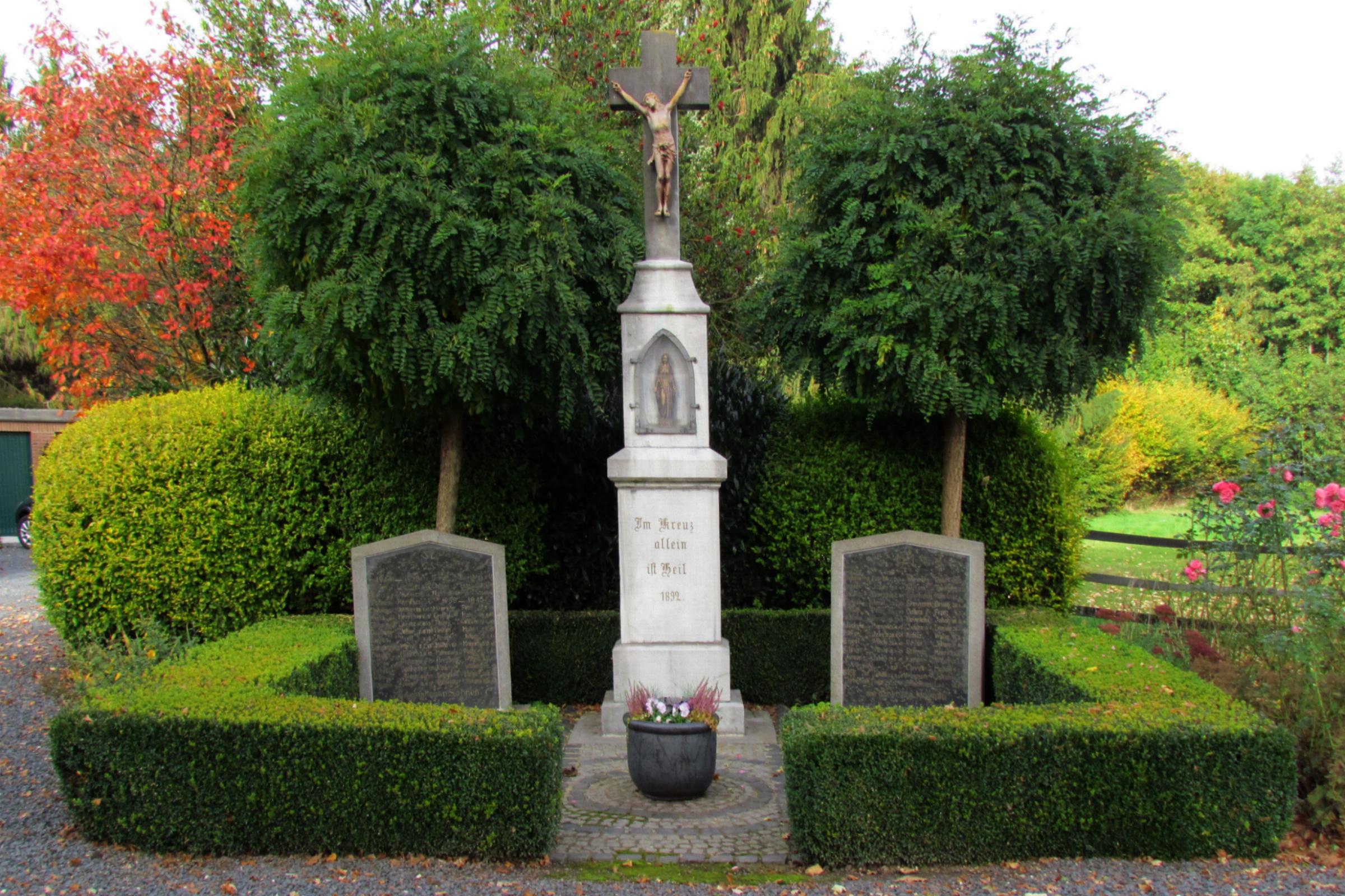 Kreuzinschrift: Im Kreuz allein ist Heil 1892 Standort: Das Dorfkreuz, das zugleich Ehrenmalanlage ist, hat seinen Standort An der Ecke Harbecker Straße / Grenzlandring im Stadtteil Harbeck in der Stadt Wegberg. Es steht mit der Nr. 45 in der Denkmalliste der Stadt Wegberg unter Denkmalschutz Denkmalbeschreibung: Kreuz aus dem Jahre 1892; Werkstein mit Metallkorpus, im Sockel eine Inschrifttafel mit Jahreszahl. Zwei Gedenktafeln mit Inschriften von insgesamt 56 Gefallenen und Vermißten der Wohnbereiche Harbeck und Am Potz. Die Tafeln haben eine Höhe von 1,10 m und eine Breite von 0,95 m. Beschreibung: Das Steinkreuz aus belg. Granit hat eine Höhe von 4,00 m, ist 0,73 m breit und 0,48 m tief und trägt ein Kruzifix aus Metall. Das gestufte Kreuz hat in mittleren Bereich eine Figurennische. Legende: Angeblich wurde die Ortschaft Harbeck im Jahr 1890 von einer Diphterie-Epidemie heimgesucht. Viele Einwohner starben. 1892 wurde dann das Kreuz von den überlebenden Bewohnern zum Dank errichtet. Quellenhinweis: * Verzeichnis: Christliche Kleindenkmale im Kreis Heinsberg (Harbeck) * Denkmal Nr. 45 in der Denkmalliste der Stadt Wegberg * Dritte Ausgabe 1994: Handbuch des Bistums Aachen ISBN 3-87448-172-7 S. 824