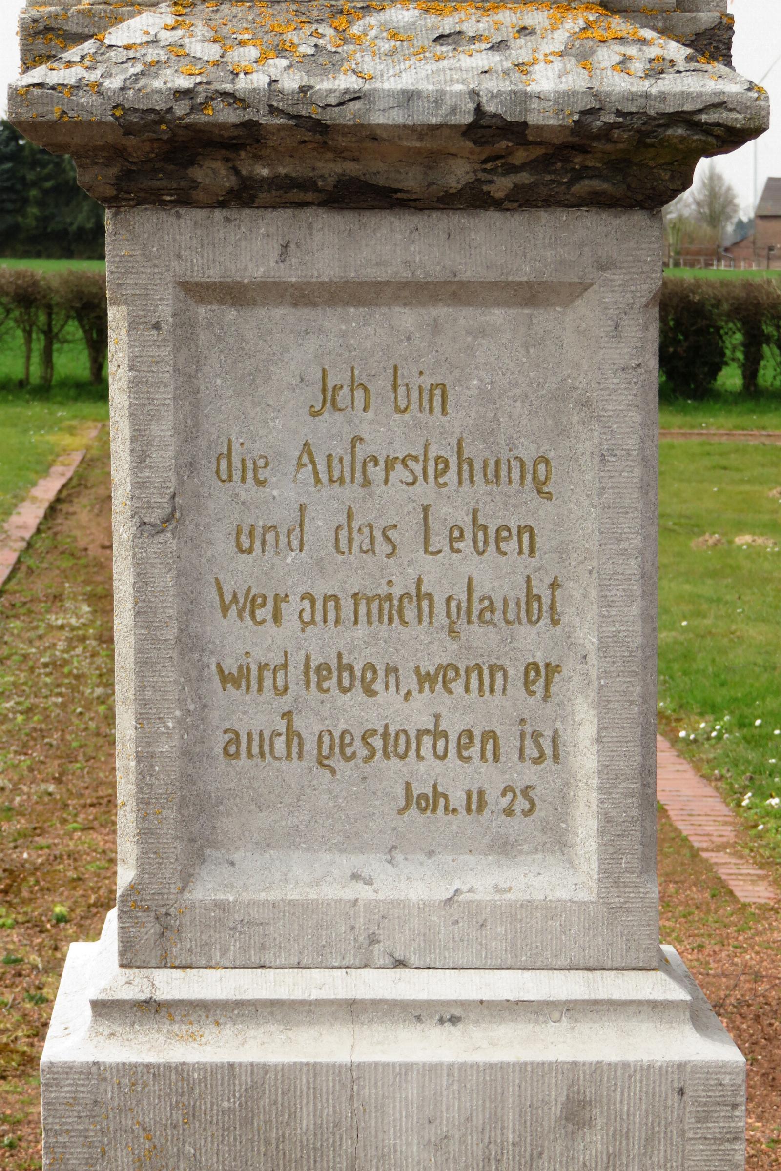 Inschrift: Ich bin die Auferstehung und das Leben, wer an mich glaubt wird leben, wenn er auch gestorben ist Joh. I I 25