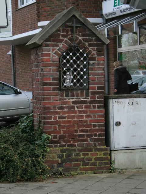 Standort: Der Bildstock steht an der Straßenecke Bahnhofstraße / Birkenallee in der Stadt Wegberg. Es steht mit der Nr. 136 in der Denkmalliste der Stadt Wegberg unter Denkmalschutz. Beschreibung: Bei dem Bildstock handelt es sich um einen Ziegelsteinbau mit einem schmiedeeisernen Gitter ohne Inschrift aus der Zeit um 1700. Er hat eine Höhe von 1,90 m, eine Breite von 0,94 m sowie eine Tiefe von 0,77 m. Eine alte Holzfigur - St. Antonius mit dem Schwein wurde von der Pfarrgemeinde zu dem bestehenden Bildstock 1875 gestiftet. Legende: Die gegenüber liegende Gaststätte besteht über 100 Jahre und hat heute noch den Namen "Zum Stöckske" - Bildstock Quellenhinweis: * Verzeichnis: Christliche Kleindenkmale im Kreis Heinsberg (Wegberg 9) * Denkmal Nr. 136 in der Denkmalliste der Stadt Wegberg * Dritte Ausgabe 1994: Handbuch des Bistums Aachen ISBN 3-87448-172-7 S. 824