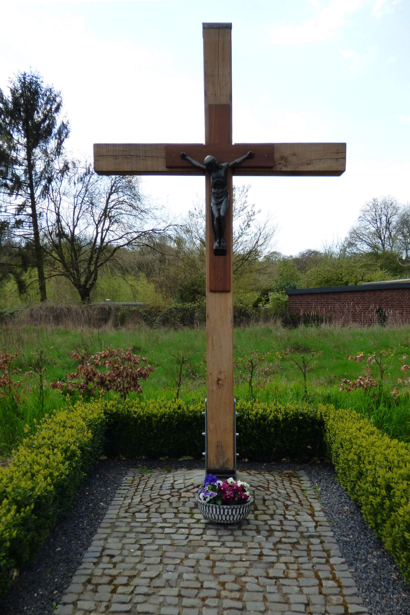Standort: Das Wegekreuz hat seinen Standort an der Heinsberger Straße in der Nähe vom Kreisverkehr, im Ortsteil Wildenrath in der Stadt Wegberg. Beschreibung: Das Holzkreuz mit einem Korpus stammt aus dem 20. Jahrhundert. Es hat eine Höhe von 2,90 m, ist 1,20 m breit und 0,10 m tief. Quellenhinweis: * Dritte Ausgabe 1994: Handbuch des Bistums Aachen ISBN 3-87448-172-7 S. 827