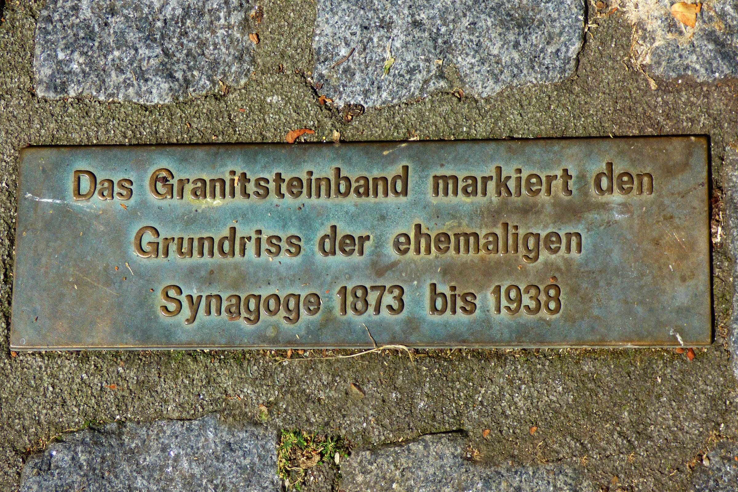 Standort: Das Synagogensteinband befindet sich an der Synagogenstraße 6 im Stadtteil Nettetal- Kaldenkirchen. Beschreibung: Das Synagogensteinband aus Granitstein markiert den Grundriss der ehem. Synagoge von 1873 - 1938. Das Steinband ist ein wichtiges Zeugnis für die Geschichte des Ortes Kaldenkirchen. Erhaltung und Erinnerung liegen aus ortsgeschichtlichen Gründen im öffentlichen Interesse. Er soll den Lebenden zu Mahnung und den Verstorbenen zur Ehre dienen.Quellenhinweis: * Dritte Ausgabe 1994: Handbuch des Bistums Aachen ISBN 3-87448-172-7
