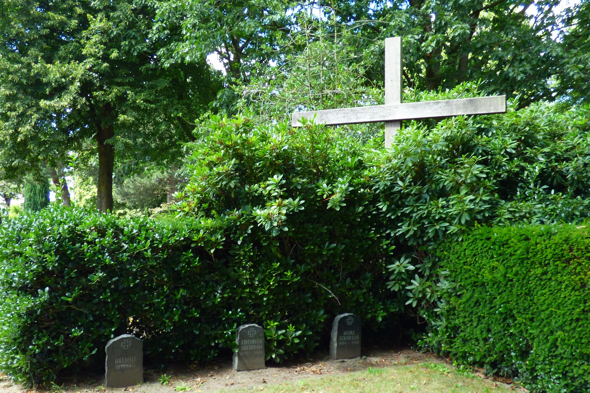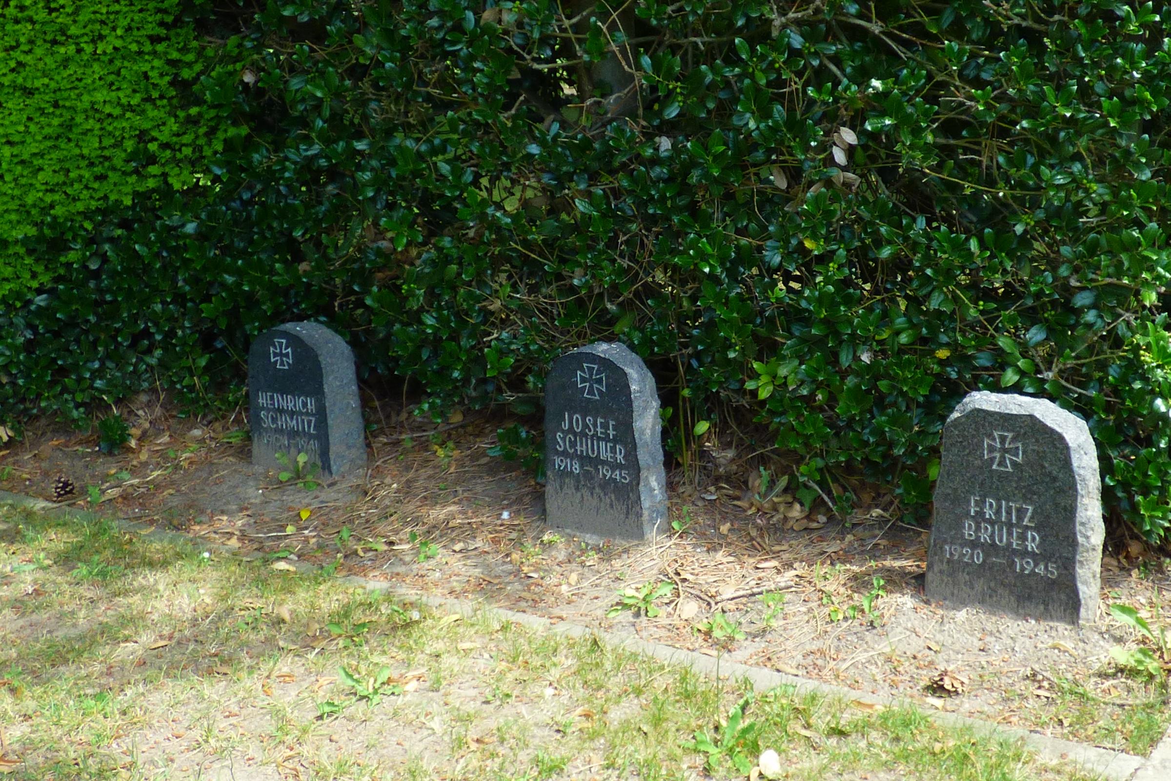 Standort: Der Ehrenfriedhof befindet sich auf der Friedhofanlage am Hampoel im Stadteil Leuth. Ein großes Kreuz und 6 Grabsteine sind dort aufgestellt. Beschreibung: Auf dem Ehrenfriedhof in Leuth haben 6 Kriegstote ihre letzte Ruhe gefunden. Der Ehrenfriedhof ist ein wichtiges Zeugnis für die Geschichte des Ortes Leuth. Erhaltung und Nutzung liegen aus ortsgeschichtlichen Gründen im öffentlichen Interesse. Er soll den Lebenden zu Mahnung und den Verstorbenen zur Ehre dienen.Kurzbeschreibung: Den kleinen Friedhof in Leuth prägt die mächtige, mehrere hundert Jahre alte Blutbuche in seiner Mitte. Der Baum ist als Naturdenkmal eingetragen und wird sorgfältig gepflegt.Fast ebenso wichtig für das Friedhofsbild sind die Kreuzwegstationen und das Hochkreuz aus Sandstein, welches in der Hauptwegeachse steht. Die durch ihre Form und große Glasflächen modern wirkende Friedhofskapelle stammt aus dem Jahr 1970. Auch neuere Tendenzen in der Beerdigungskultur finden auf dem Friedhof in Leuth ihren Platz; so wurde in unmittelbarer Nähe zur Friedhofskapelle eine gelungene Anlage für Urnenbestattungen hergerichtet, die starken Zuspruch findet. Quellenhinweis: * Dritte Ausgabe 1994: Handbuch des Bistums Aachen ISBN 3-87448-172-7 * Friedhofsbeschreibung der Stadt Nettetal