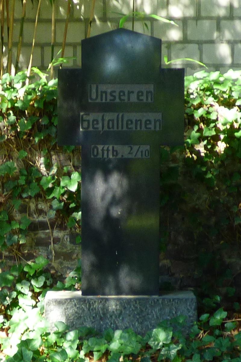 Standort: Der Ehrenfriedhof befindet sich auf dem ehemaligen evangelischen Friedhof an der Straße Zur Lärche 21a, im Stadtteil Kaldenkirchen. Er ist Bestandteil der Friedhofs. Beschreibung: Der Ehrenfriedhof in Kaldenkirchen besteht aus einem Gedenkstein und 2 Kriegsgräbern. Hier haben 2 Kriegstote ihre letzte Ruhe gefunden. Der Ehrenfriedhof ist ein wichtiges Zeugnis für die Geschichte des Ortes Kaldenkirchen. Erhaltung und Nutzung liegen aus ortsgeschichtlichen Gründen im öffentlichen Interesse. Er soll den Lebenden zu Mahnung und den Verstorbenen zur Ehre dienen.Quellenhinweis: * Dritte Ausgabe 1994: Handbuch des Bistums Aachen ISBN 3-87448-172-7 |