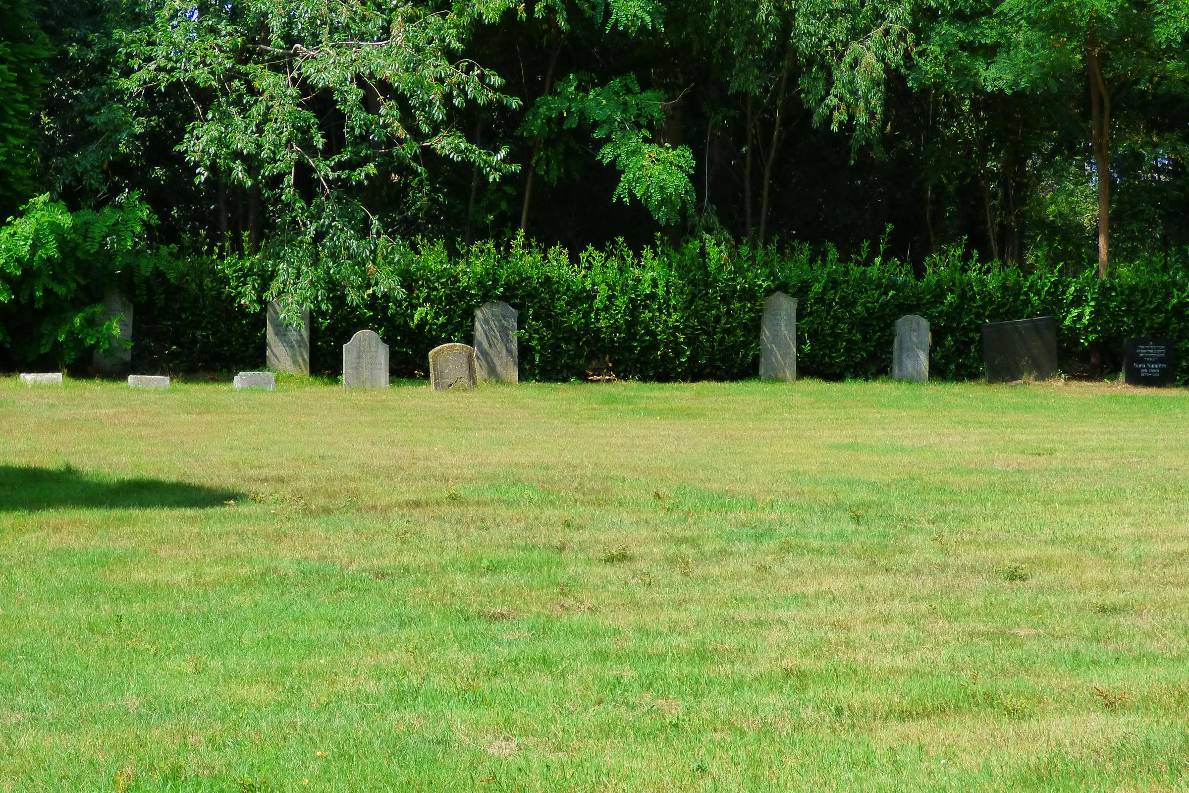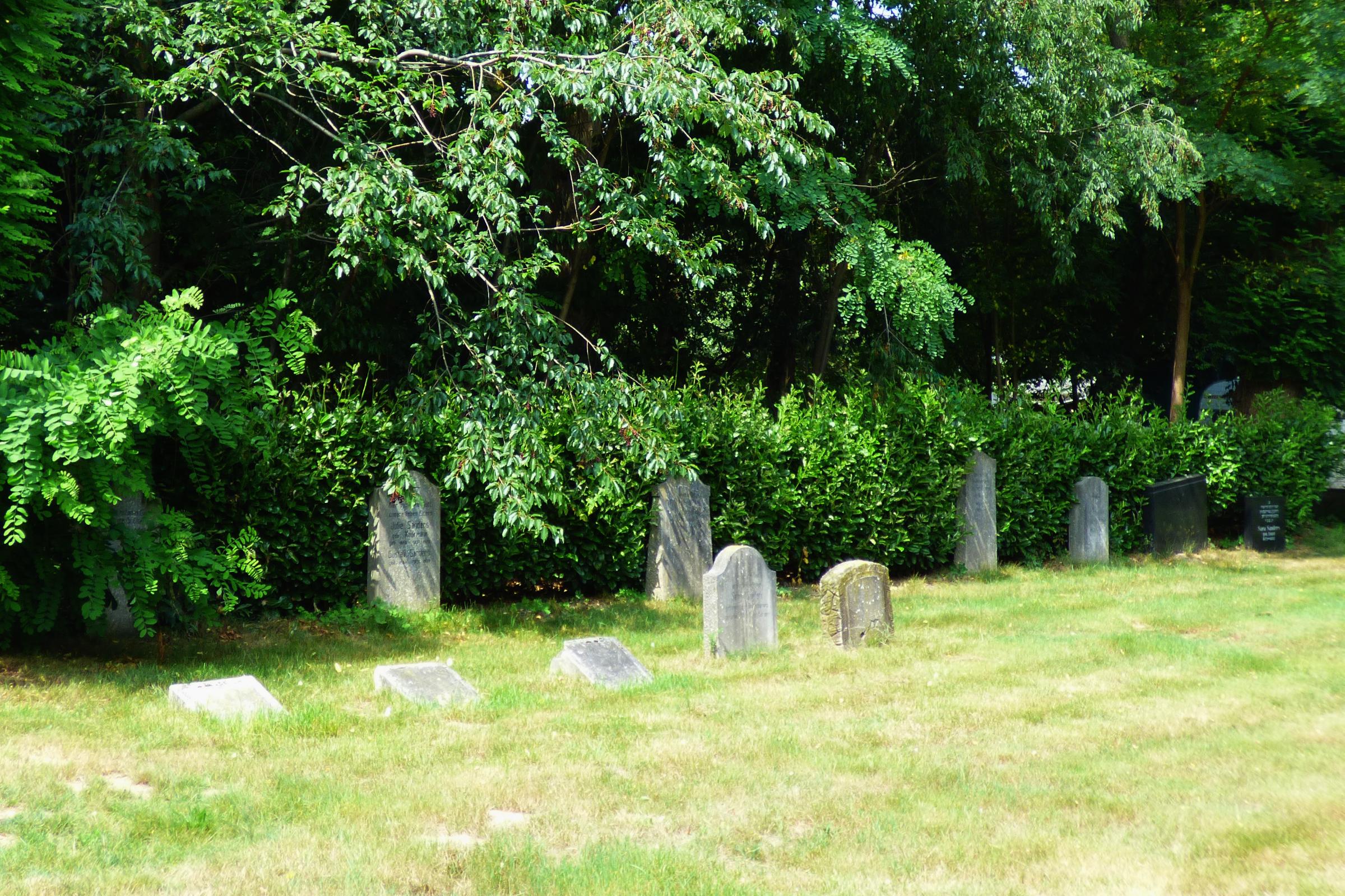 geräumt, im hinteren Bereich sind in zwei Reihen 13 Grabsteine und