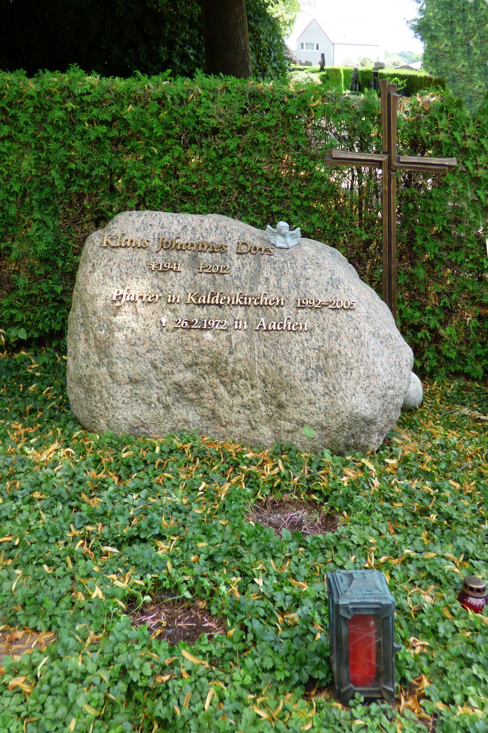 Fred Nothen Klaus Johannes Dors * 26.4.1855 * 1941 + 2012 SAZ 4.7.1880 Pfarrer in Kaldenkirchen + 6.3.1929 Weihe 26.21972 in Aachen Standort: Die Priestergräber befinden sich in der Nähe der Alten Friedhofskapelle. Sie sind Bestandteil der Friedhofanlage. Quellenhinweis: * Dritte Ausgabe 1994: