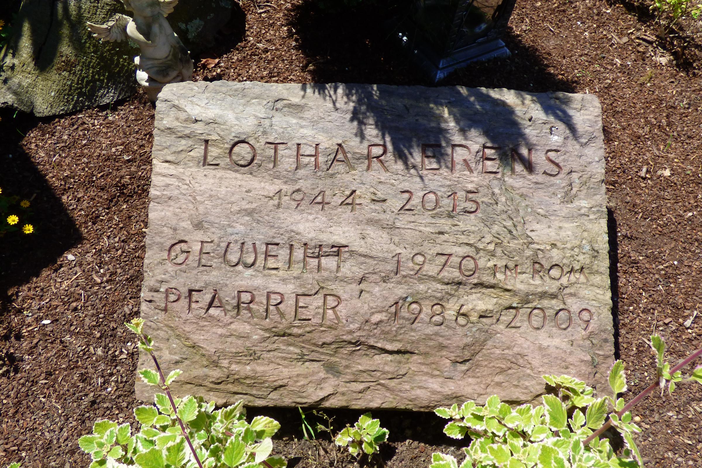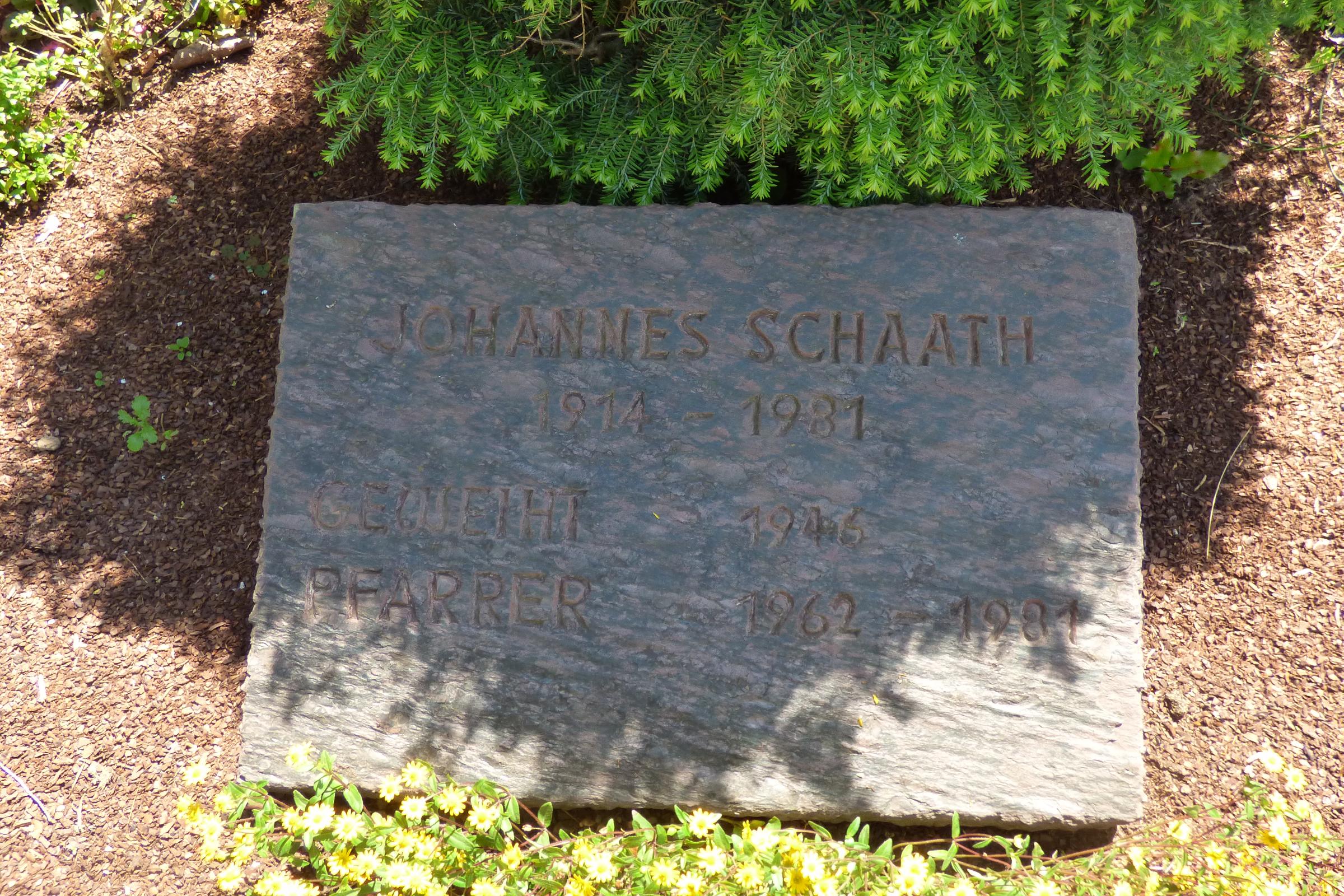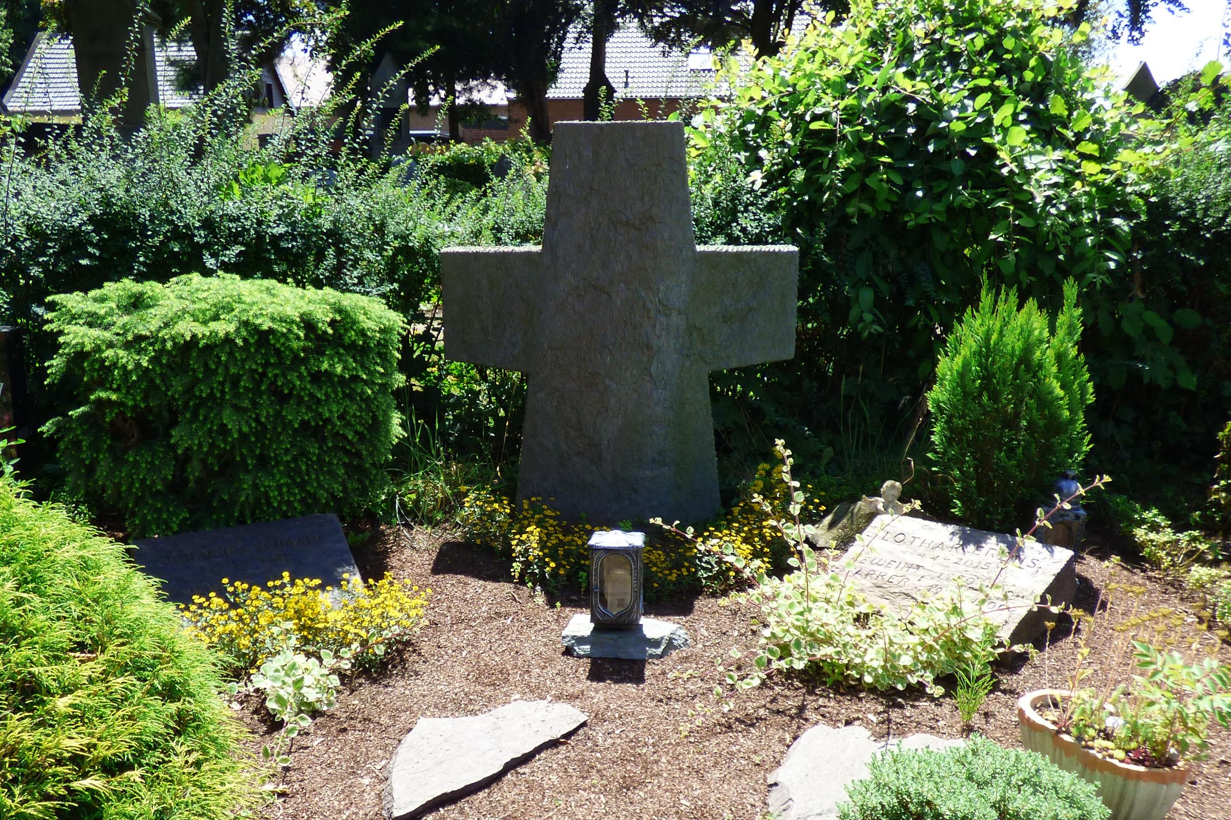 Johannes Schaath Lothar Erens 1914 - 1981 1944 - 2015 geweiht 1946 geweiht 1970 in Rom Pfarrer 1962 - 1981 Pfarrer 1986 - 2009 Standort: Die Priestergräber befinden sich auf dem Friedhof am Hampoel im Stadtteil Leuth. Sie sind in der Nähe des Friedhofskreuzes und Bestandteil der Anlage. Kurzbeschreibung: Den kleinen Friedhof in Leuth prägt die mächtige, mehrere hundert Jahre alte Blutbuche in seiner Mitte. Der Baum ist als Naturdenkmal eingetragen und wird sorgfältig gepflegt.Fast ebenso wichtig für das Friedhofsbild sind die Kreuzwegstationen und das Hochkreuz aus Sandstein, welches in der Hauptwegeachse steht. Die durch ihre Form und große Glasflächen modern wirkende Friedhofskapelle stammt aus dem Jahr 1970. Auch neuere Tendenzen in der Beerdigungskultur finden auf dem Friedhof in Leuth ihren Platz; so wurde in unmittelbarer Nähe zur Friedhofskapelle eine gelungene Anlage für Urnenbestattungen hergerichtet, die starken Zuspruch findet. Quellenhinweis: * Dritte Ausgabe 1994: Handbuch des Bistums Aachen ISBN 3-87448-172-7 * Friedhofsbeschreibung der Stadt Nettetal