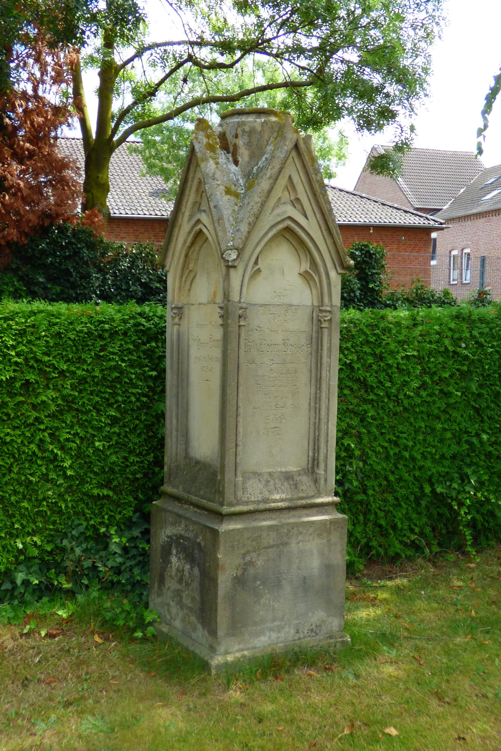 Standort: Die historische Grabmale sind Bestandteil der Friedhofanlage und befindet sich an der Eremitenstraße im Stadteil Lobberich. Sie sind von historischem Wert, da sie als Zeitzeugen vergangener Zeit Informationen enthalten. An der Erhaltung besteht ein öffentliches Interesse. Beschreibung: Lobberich besitzt den größten Friedhof im Stadtgebiet. Den alten Friedhofsteil prägen viele historische Grabmale, die Geschichten aus früheren Tagen erzählen. Auch der Waldfriedhof mit dem Mausoleum der Familie von Heimendahl und dem alten Baumbestand aus Rotbuchen gehört hierzu. Den alten Friedhofseingang markieren zwei Torhäuser, in denen früher die Verwaltungs- und Lagerräume für den Friedhof untergebracht waren. Sehenswert ist die große Ehrenanlage, die Gefallene aus beiden Weltkriegen beherbergt. Hier werden, im Wechsel mit den anderen Stadtteilen, die Gedenkfeiern am Volkstrauertag abgehalten.Wer den Friedhof von der Düsseldorfer Straße aus betritt, stößt auf ein weiteres Ehrenmal, das einen Gefallenen in den Armen eines Engels zeigt. Die Priestergrabstätte schließt sich in der Nachbarschaft an. Sehenswert sind hier die Denkmale und die Grabanlage. Quellenhinweis: * Dritte Ausgabe 1994: Handbuch des Bistums Aachen ISBN 3-87448-172-7 * Friedhofsbeschreibung der Stadt Nettetal