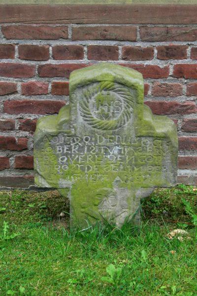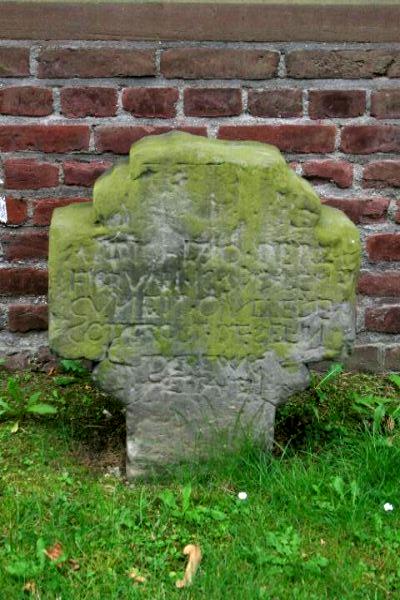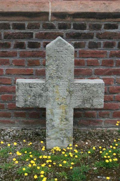 Historische Blaustein Grabsteine an der Kirche St. Laurentius in Elmpt