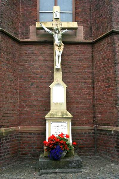 Kreuzwegstationen und Hochkreuz an der Kirche St. Laurentius in Elmpt