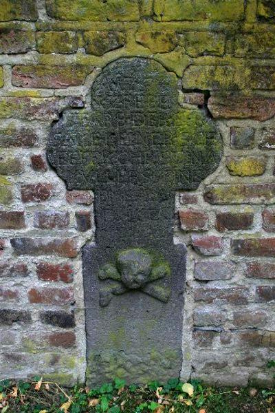 Historische Blaustein Grabsteine an der Kirche St. Bartolomäus in Niederkrüchten