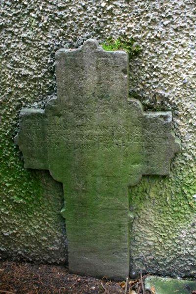 Standort: Die Historischen Blaustein Grabsteine befinden sich in der Kirchenmauer der Pfarrkirche St. Bartholomäus in Niederkrüchten. Die Steine stammen aus dem 17. Jahrhundert. Kirche und Steine stehen mit der Nr. 20 in der Denkmalliste der Gemeinde Niederkrüchten unter Denkmalschutz. Quellenhinweis * Beschreibung der Denkmalbehörde * Denkmal Nr. 20 Gemeinde Niederkrüchten