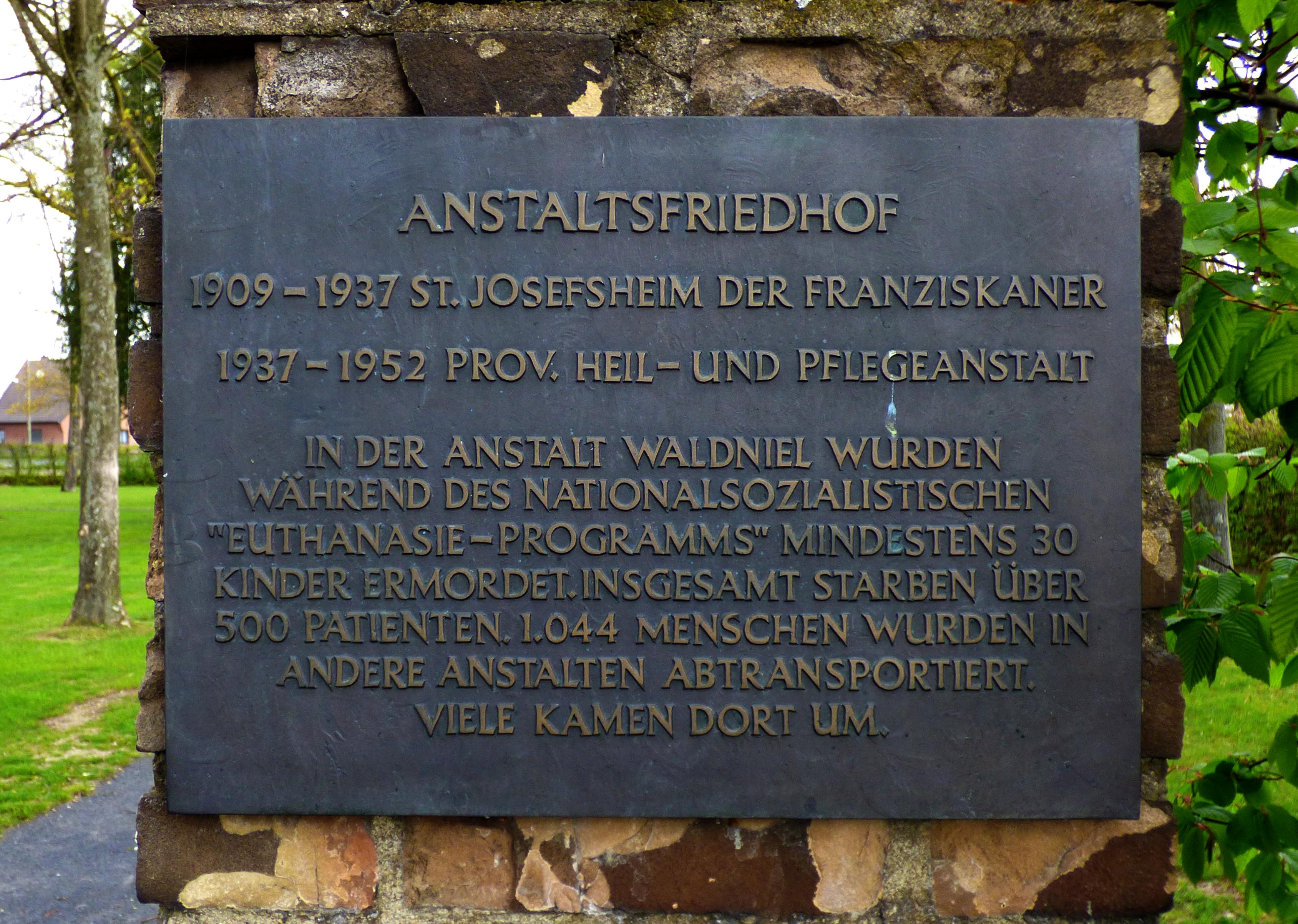 Standort: Der Anstaltsfriedhof und die Gedenkstätte der NS Psychiatrie befindet sich im Ortsteil Hostert. Beschreibung:Der Anstaltsfriedhof und die Gedenkstätte der NS Psychiatrie erinnert an die Menschen die hier in Hostert durch die Gewaltherrschaft umgekommen sind. Die Gedenkstätte schließt den ehemaligen Friedhof mit ein. An einer über 2,00 m hohen Mauer, die das Gelände umgibt stehen die Namen der zu Tode gekommenen Personen.