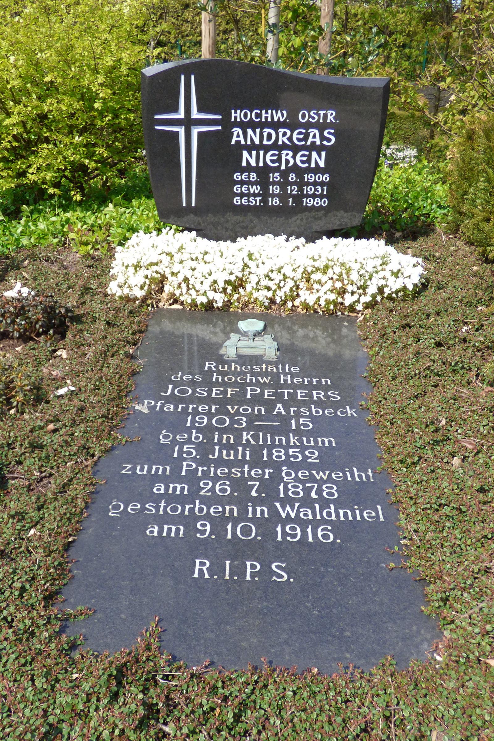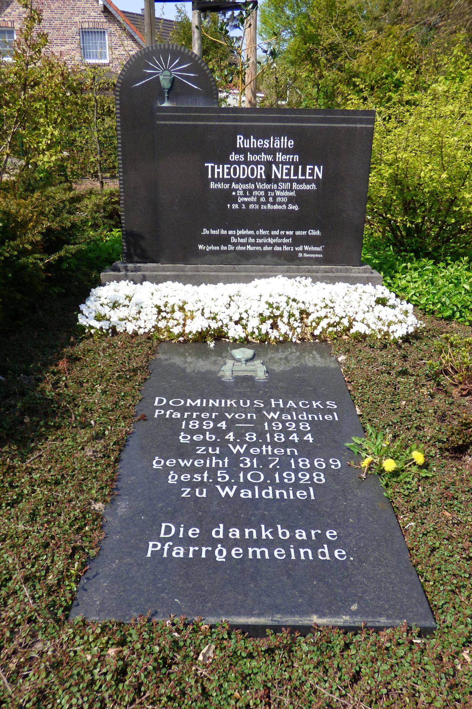 Standort: Die Priestergräber befinden sich auf dem Kath. Friedhof an der Schulstraße in Waldniel. Sie sind Bestandteil der Friedhofanlage. Beschreibung: Die Priestergräber und das Friedhofskreuz bilden auf dem Friedhof eine Einheit. * Friedhöfe St. Mattias Schwalmtal