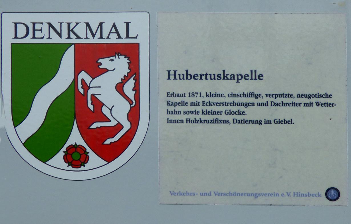 Standort: Die Hubertuskapelle hat ihren Standort in Glabbach 22a, im Stadtteil Nettetal - Glabbach. Sie steht mit der Nr. 93 in der Denkmalliste Nettetal unter Denkmalschutz. Denkmalbeschreibung: