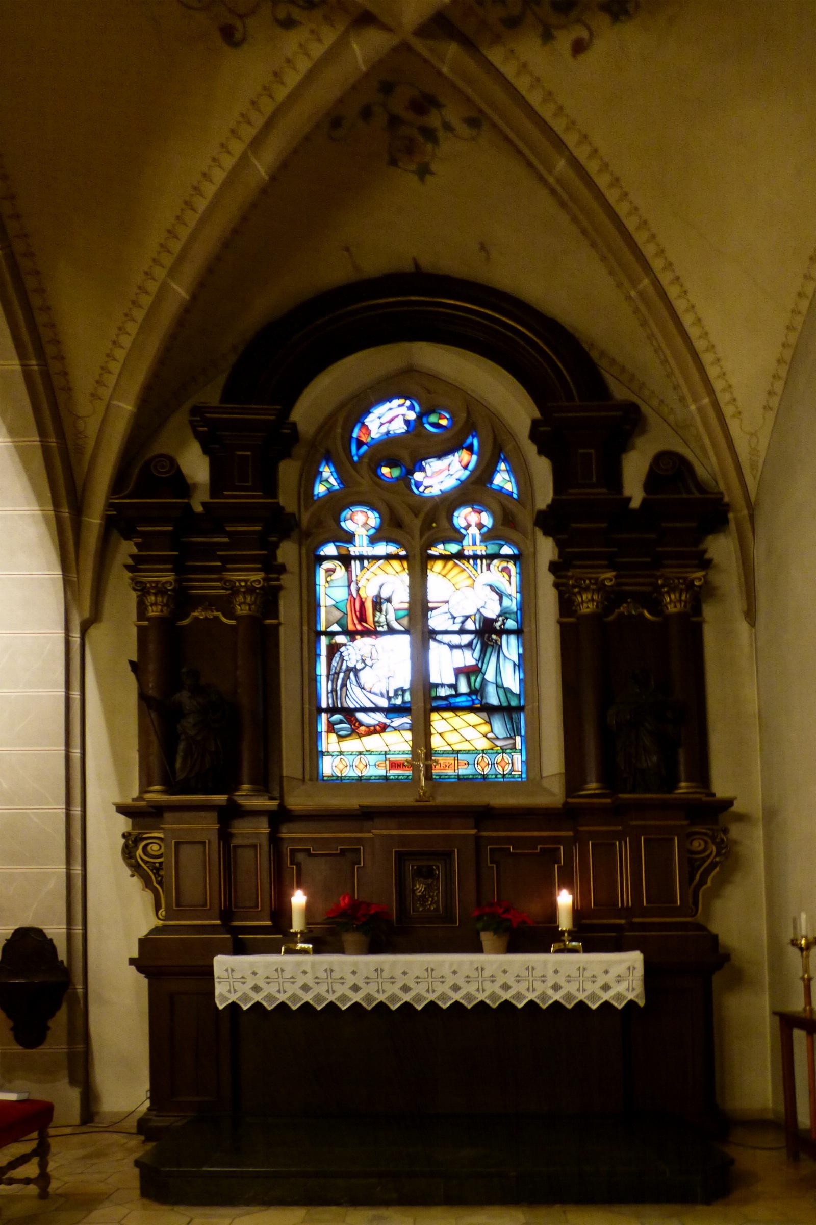 polygonalem Chor und Dachteiler (1909); der vordere Teil eine ehemalige