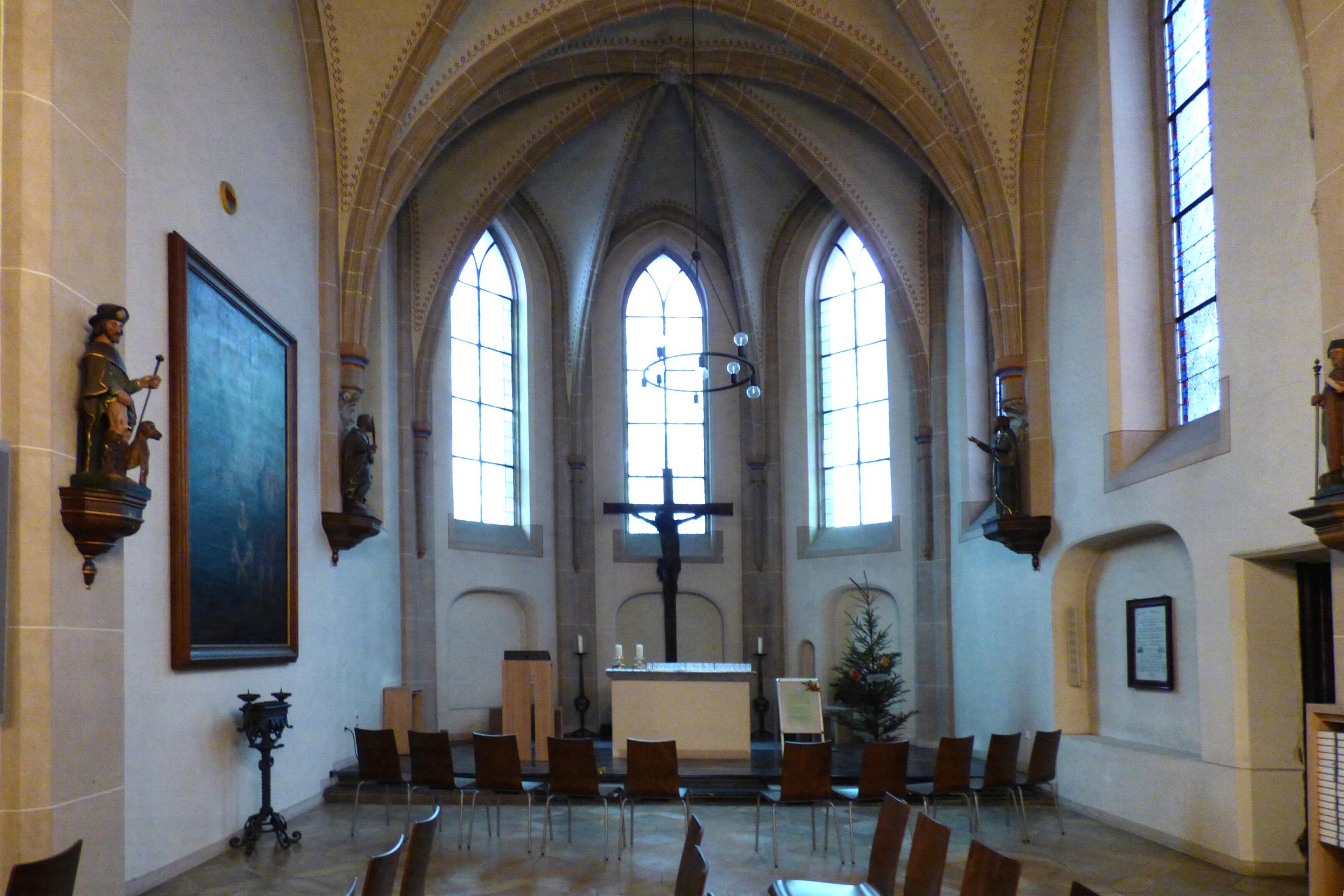vorgesetztem Westturm (1604); heute zu einem Kirchgebäude