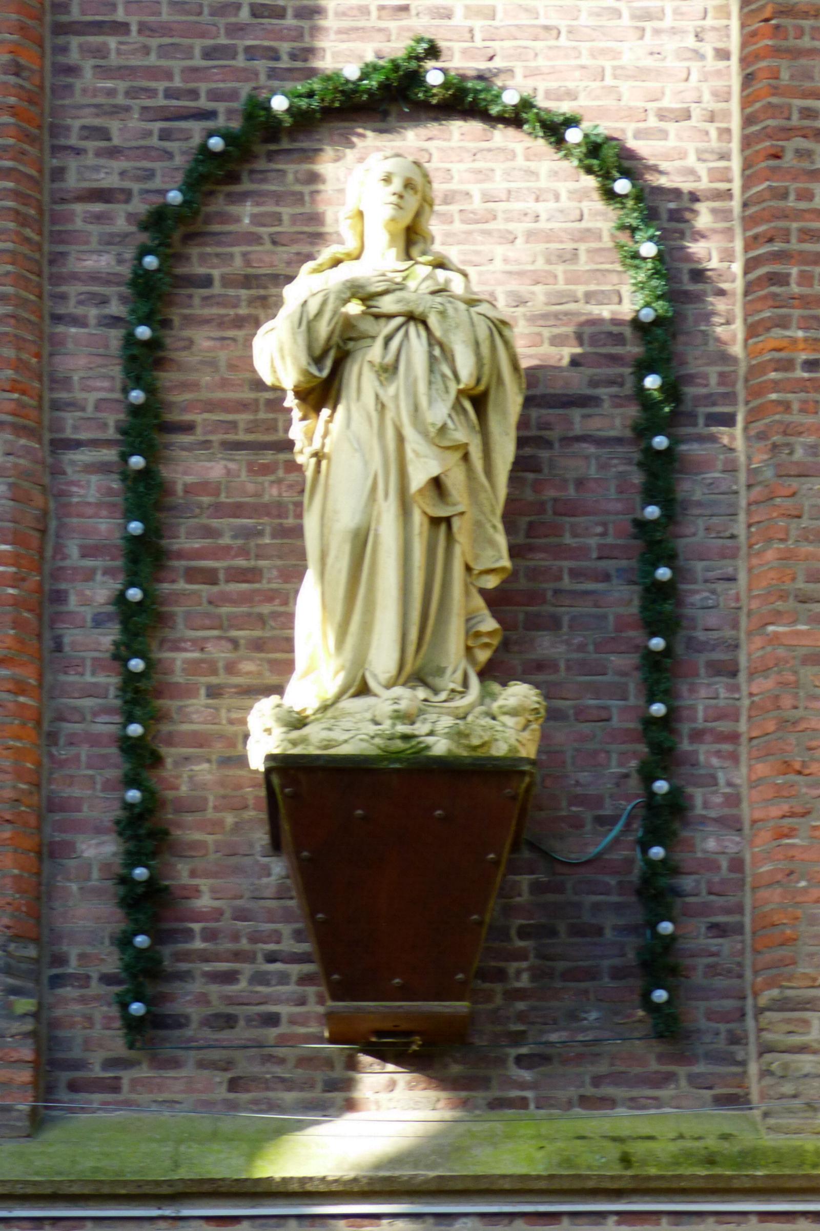Standort: Die Muttergottesfigur hat seinen Standort an der Ostseite der Kirche in Bracht. Beschreibung: Die Muttergottesfigur hat ihren Standort an der Ostseite der Kirche in Bracht. Die etwa 2,00 m hohe Figur steht auf einem Postament und ist mit einer beleuchteten Girlange umgeben. Quellenhinweis: * Dritte Ausgabe 1994: Handbuch des Bistums Aachen ISBN 3-87448-172-7