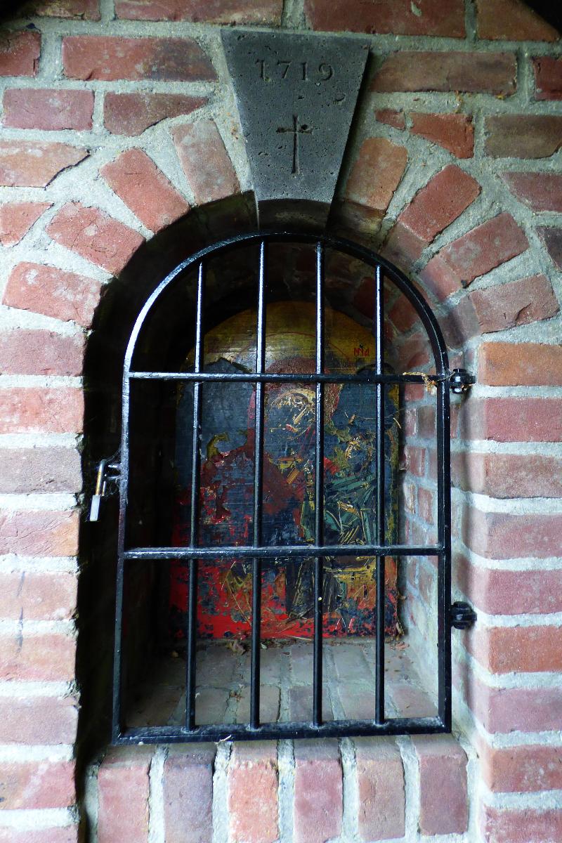 Standort: Das Mutter Anna Heiligenhaus hat seinen Standort an der Karstraße 1, Römerstraße im Stadtteil Nettetal - Hinsbeck. Beschreibung: Bei dem Objekt handelt es sich um ein ca. 2,50 m hohes Heiligenhaus aus Backstein unter einem Satteldach. Das Dach überdeckt eine rundbogige Mauernische, in der hinter einem Ziergitter ein Bildniss der Hl. Anna steht. Im Keilstein oberhalb der Nische ist die Jahreszahl 1719 eingelassen. Quellenhinweis: * Dritte Ausgabe 1994: Handbuch des Bistums Aachen ISBN 3-87448-172-7