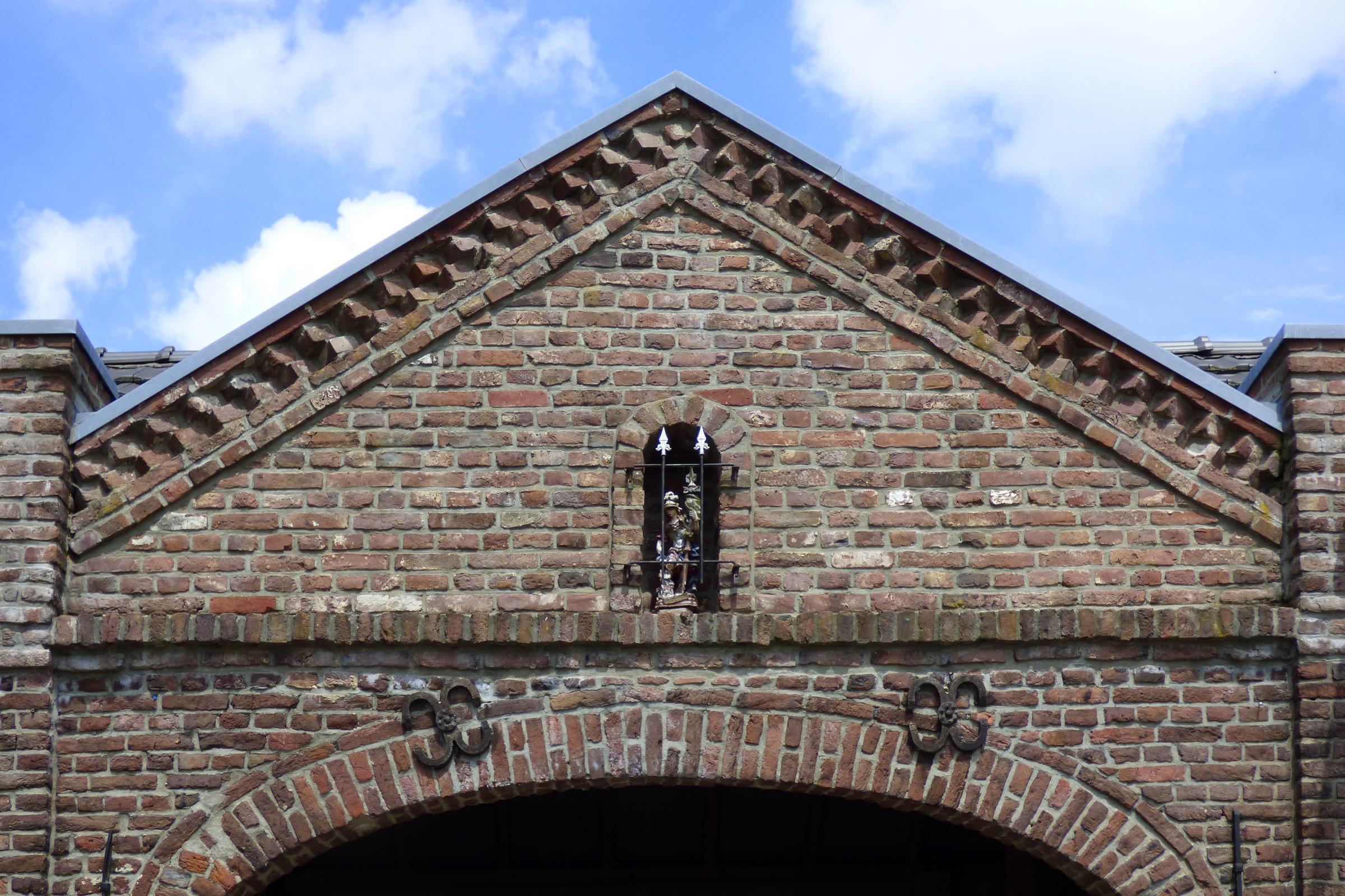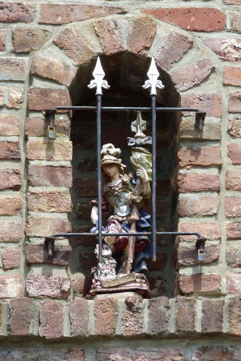 ![]() Standort: Die St. Florian Figur hat ihren Standort in Glabbach 44 im Stadtteil Nettetal - Hinsbeck. Beschreibung: Bei dem Objekt handelt es sich um eine ca. 0,50 m hohe Figur des St. Florian, dem Schutzpatron der Feuerwehren. Die Figur steht in einer rundbogigen Mauernische einer Giebelwand. Quellenhinweis: * Dritte Ausgabe 1994: Handbuch des Bistums Aachen ISBN 3-87448-172-7