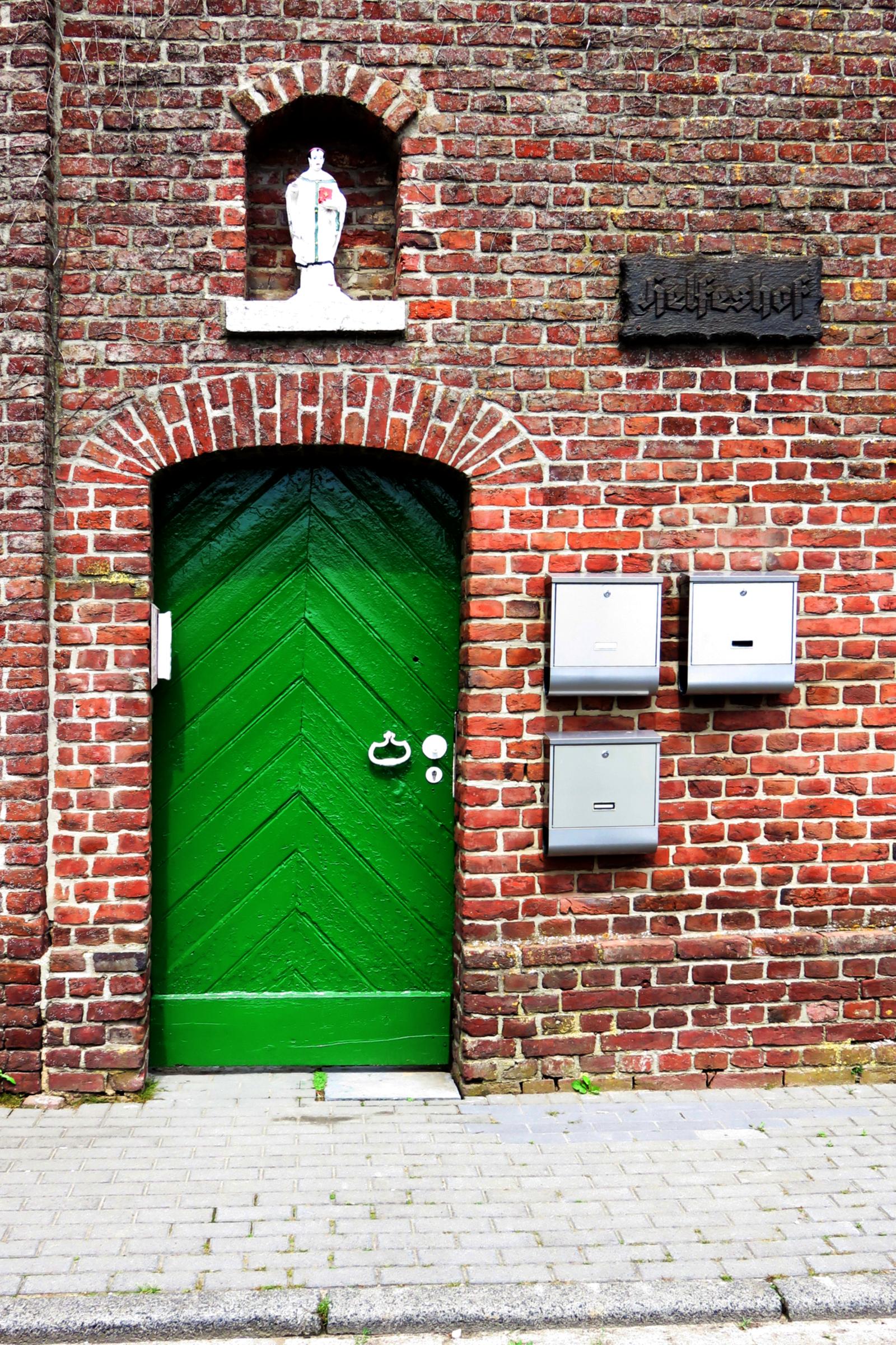 Standort: Die Wandfigur hat ihren Standort am Helfeshof in Wevelinghoven 15, im Stadtteil Nettetal - Hinsbeck. Beschreibung: Bei der Wandfigur handelt es sich um eine Gipsfigur mit einer Höhe von ca. 0,50 m. Sie steht in einer rundbogigen Mauernische oberhalb des Hofeingangs. Quellenhinweis: * Dritte Ausgabe 1994: Handbuch des Bistums Aachen ISBN 3-87448-172-7