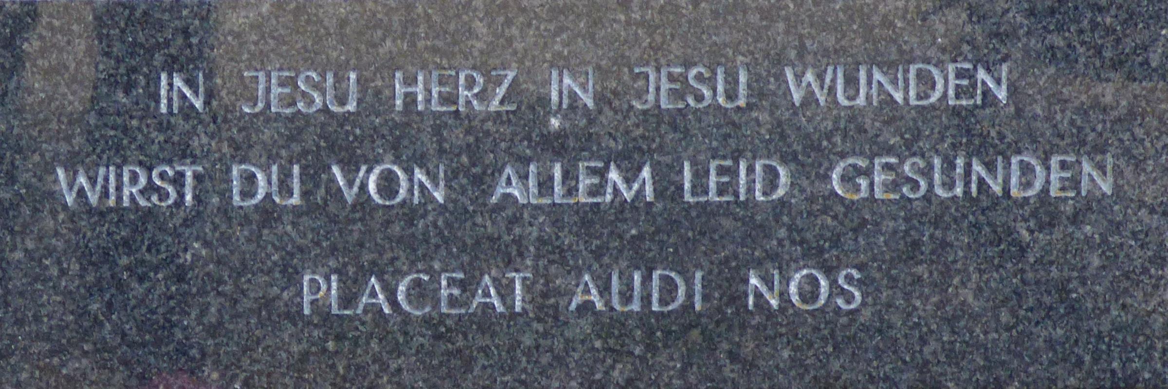 Namen (Schwarze Hergott) Inschrifttafel: IN JESU HERZ IN JESU WUNDEN WIRST DU VON ALLEM LEID GESUNDEN PLACEAT AUDI NOS Quellenhinweis: * Denkmal Nr. 153 der Denkmalliste Nettetal * Dritte Ausgabe 1994: Handbuch des Bistums Aachen ISBN 3-87448-172-7 * Text der