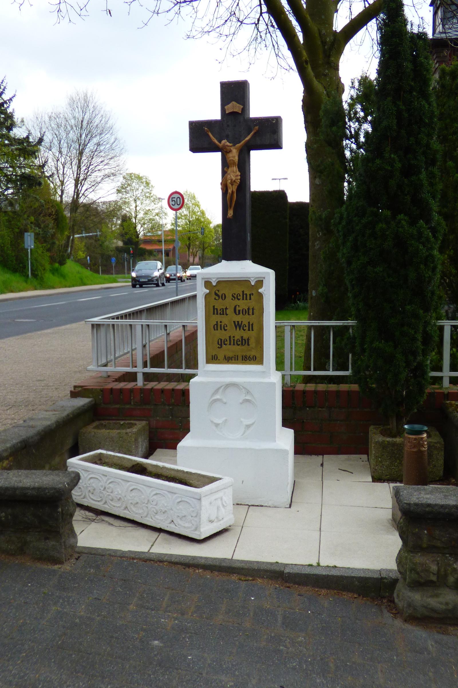 Standort: Das Missionskreuz hat Standort an der Gladbacher Straße 96 in Waldniel Beschreibung: Bei dem Missionskreuz handelt es sich um ein ca. 2,20 m hohes Steinkreuz mit einem Korpus. Die Inschrift des Kreuzes lautet: S o s e h r h a t G o t t d i e W e l t g e l i e b t. 10. April 1860 Quellenhinweis: * Dritte Ausgabe 1994: Handbuch des Bistums Aachen ISBN 3-87448-172-7