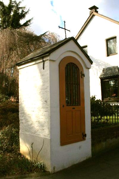 Standort: Das Heiligenhäuschen hat seinen Standort am Willy - Brand - Ring in Viersen. Das Heiligenhäuschen steht mit der Nr. 213 in der Denkmalliste der Stadt Viersen unter Denkmalschutz. Denkmalbeschreibung: Das Heiligenhäuschen aus Backstein wird im Jahre 1847 aus Dankbarkeit errichtet; denn ein Jahr zuvor brennt der Bronkhorsthof ab und zum Dank dafür, dass kein Mensch ums Leben gekommen oder schwer verletzt worden ist, stiftet man das Häuschen. Es ist etwa 3,00 m hoch und besitzt ein kleines, schiefergedecktes Satteldach. Die kleine, rundbogige Holztür mit dem eingelassenen Fenster wird erst 1960 angebracht. Im Inneren befindet sich geschützt hinter einer Glastür eine Muttergottesfigur mit dem Jesuskind, das sie auf dem Arm trägt. Es handelt sich um eine sogenannte Prozessionsmadonna oder auch Anziehfigur, bei der lediglich der Kopf und die Hände aus Holz geschnitzt sind, während der Rumpf aus einem Holzgestell besteht. Darüber trägt Maria ein weißes Gewand, das natürlich nicht mehr das ursprüngliche ist. Maria wird mit Krone und Zepter als Himmelskönigin dargestellt. Das Jesuskind hält die Weltkuppel in der Hand. In der großen, tonnengewölbten Nische befindet sich im Gewölbe vor der Figurengruppe eine Ewig-Licht-Lampe und ein gusseisernes Glöckchen, vor der sich wohl früher die Nachbarschaft zur Andacht versammelt. Regelmäßig im Mai wird die Muttergottes verehrt, und es ist auch üblich, hier bei schweren Krankheiten zu beten. Aus wissenschaftlichen, insbesondere volkskundlichen und heimatgeschichtlichen Gründen stehen Erhaltung und Nutzung des Heiligenhäuschens gemäß § 2 (1) des Denkmalschutzgesetzes im öffentlichen Interesse. Quellenhinweis: * Dritte Ausgabe 1994: Handbuch des Bistums Aachen ISBN 3-87448-172-7 * Denkmal Nr. 213 der Denkmalliste Viersen