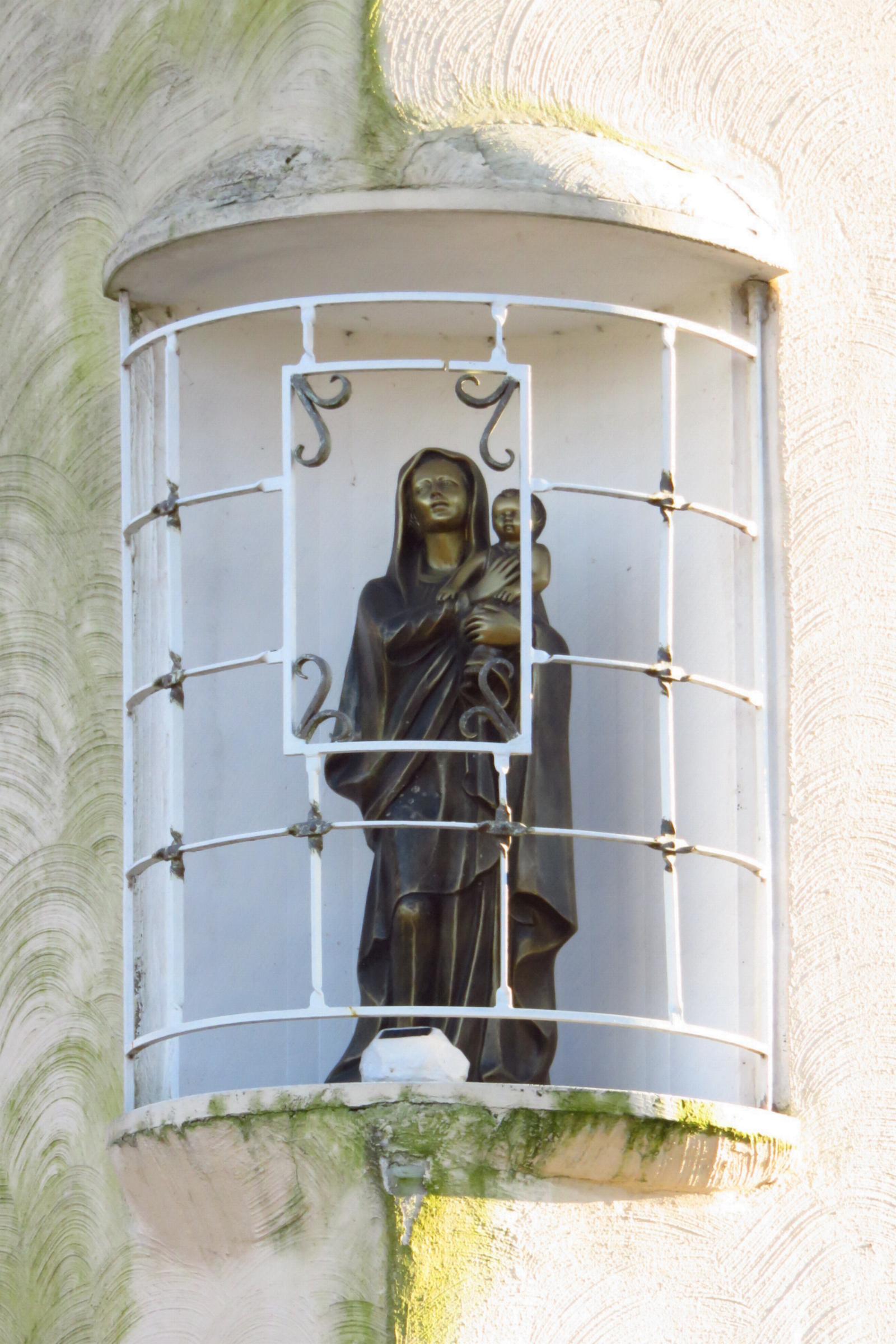Standort: Der Marien Wanderker befindet sich in der Gladbacher Straße 158, im Stadtteil Mönchengladbach - Rheindahlen. Der Erker ist an der Hausecke eingebaut und zeigt eine Madonna mit Kind.