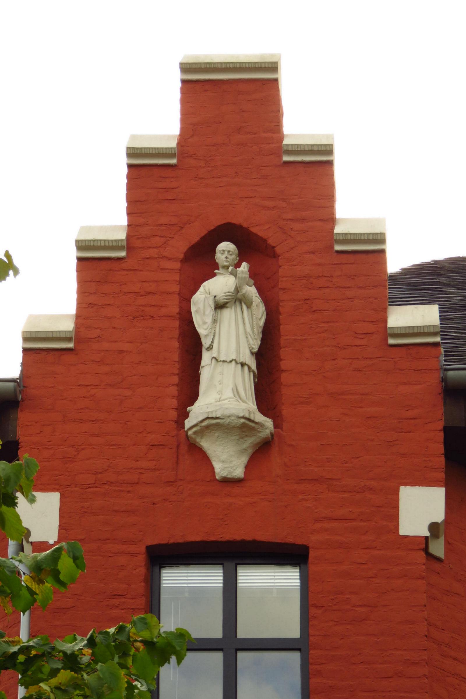 Standort und Geschichte: Die Statue des Heiligen Aloysius hat ihren Standort am Treppengiebel des Hauses Rudolfstraße 7-9 im Stadteil Waldhausen im Stadtteil Mönchengladbach - Waldhausen. Das Objekt steht in der Denkmalliste der Stadt Mönchengladbach mit der Nr. R 023 unter Denkmalschutz. Denkmalbeschreibung: Das benannte Objekt ist in