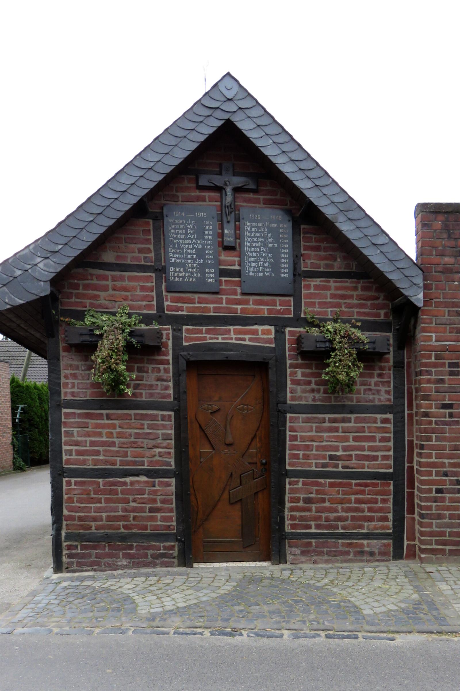 Standort und Geschichte: Die Gedenktafeln befindet sich über der Eingangstür der Kapelle "Zur heiligsten Dreifaltigkeit" in Genhodder, im Stadtteil Mönchengladbach - Genhodder. Die Kapelle steht als Denkmal Nr. G 024 in der Denkmalliste der Stadt Mönchengladbach unter Denkmalschutz.
