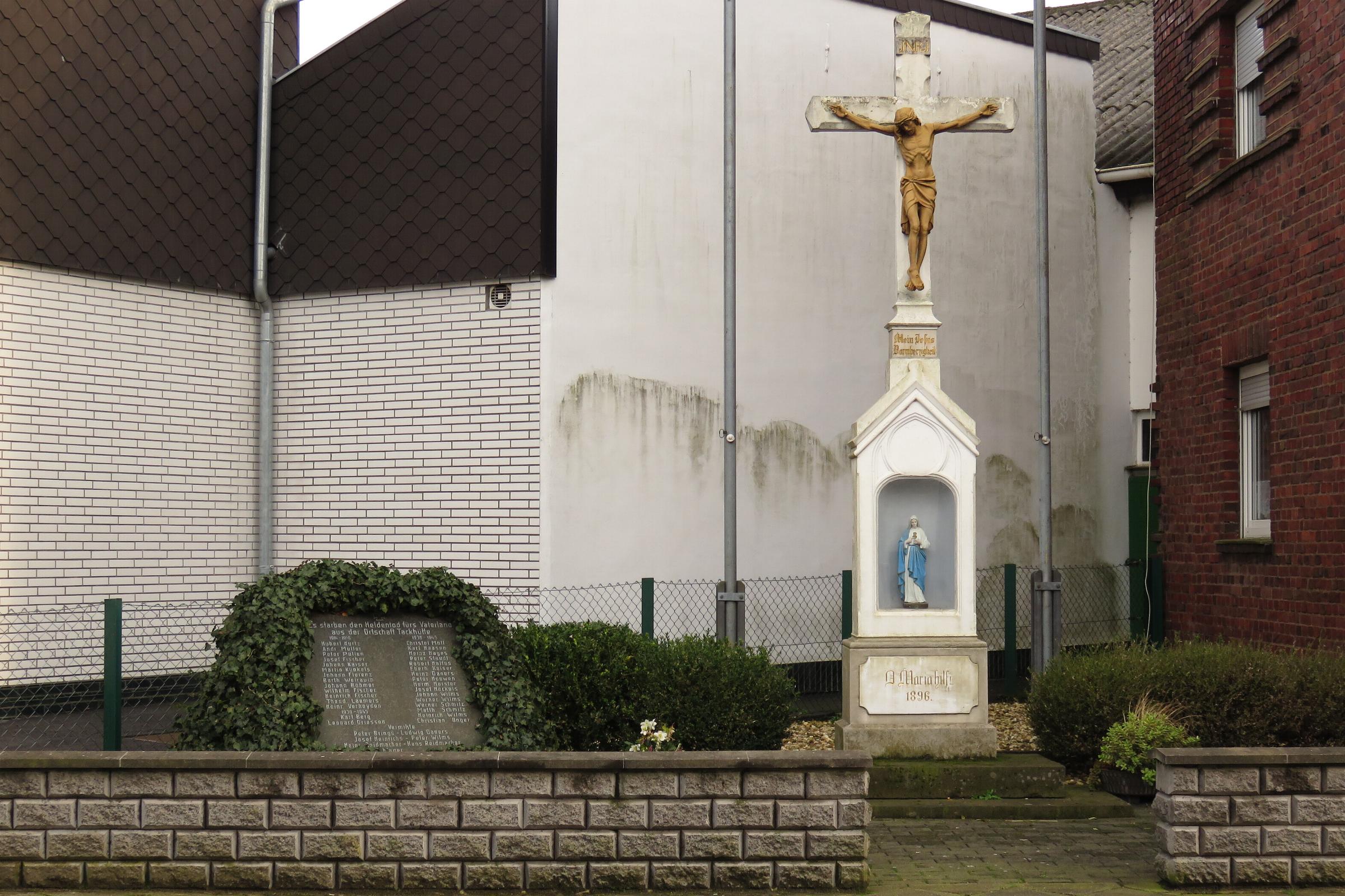 Maria hilf 1896", an der Basis des Kreuzes eine zweite Inschrift: "Mein Jesus Barmherzigkeit". Das Objekt ist bedeutend für die Geschichte des Menschen. An seiner Erhaltung und Nutzung besteht ein öffentliches Interesse aus ortsgeschichtlichen, volkskundlichen Gründen. Das Objekt ist als Baudenkmal * Denkmaleintrag der Stadt Mönchengladbach Nr. T 018 vom 29. September 2009